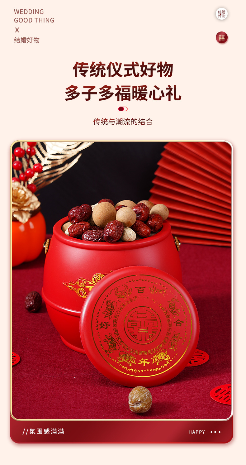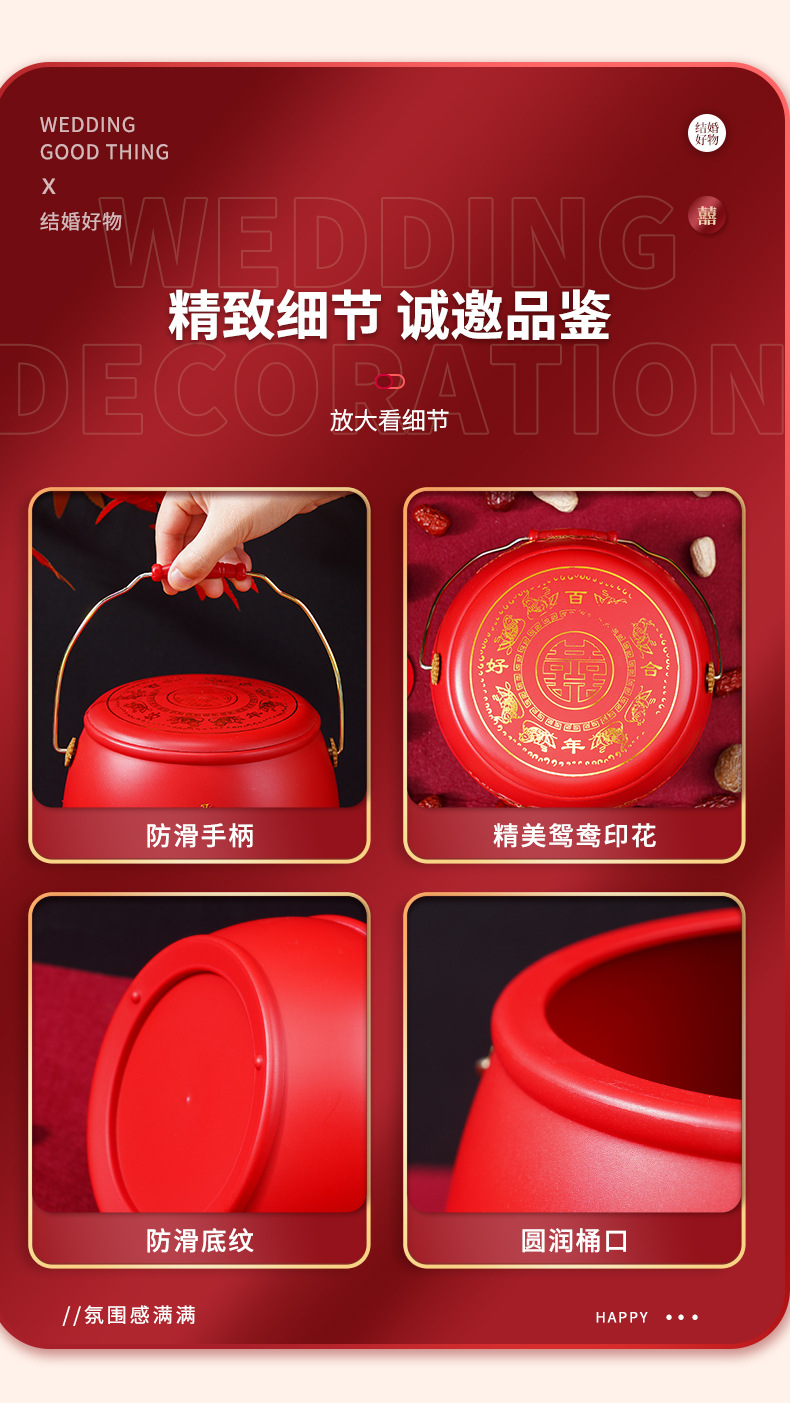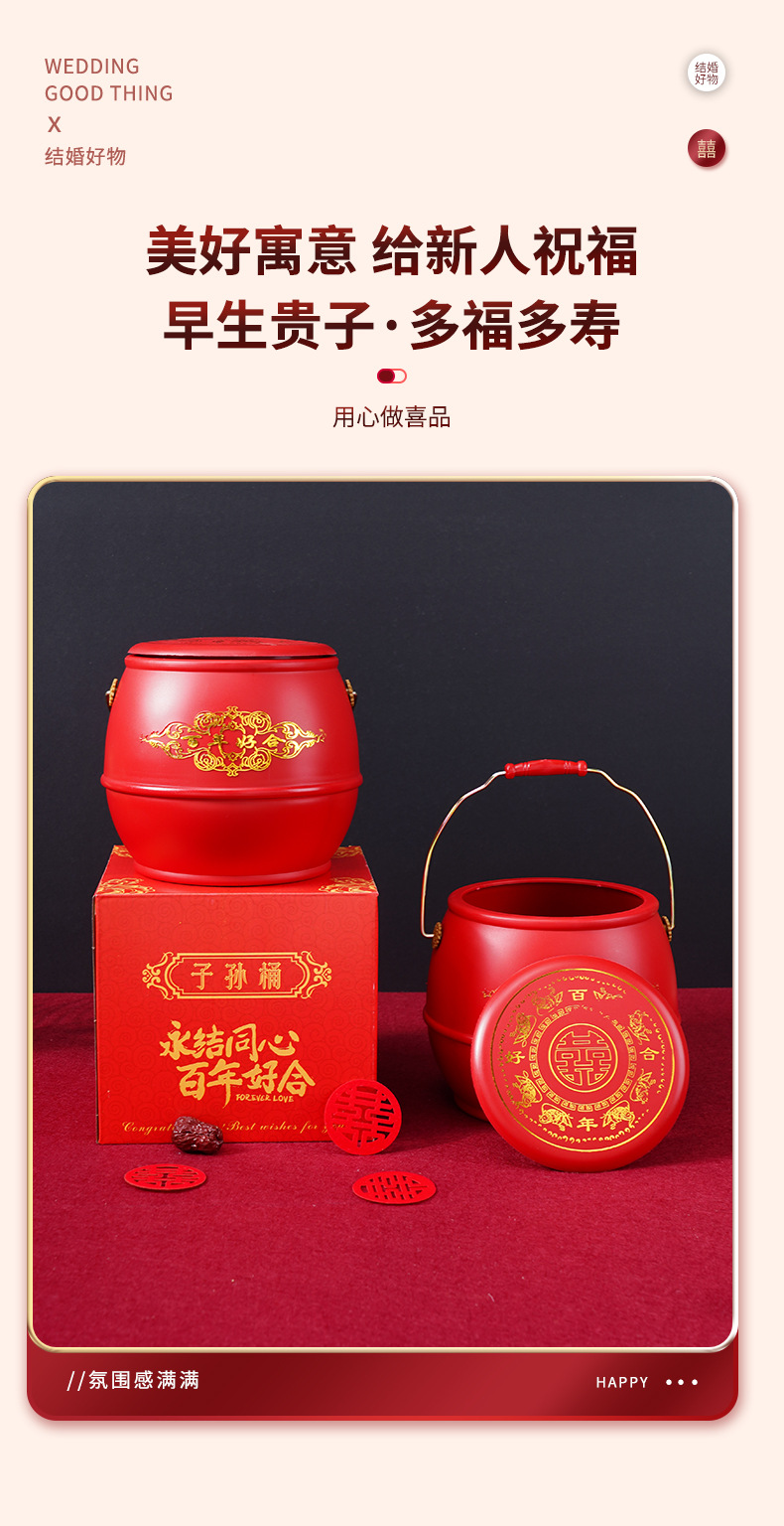結婚祝い用品の孫桶の女性の花嫁が結婚して結婚式用の喜桶の赤い結婚式の便器を飾っています。