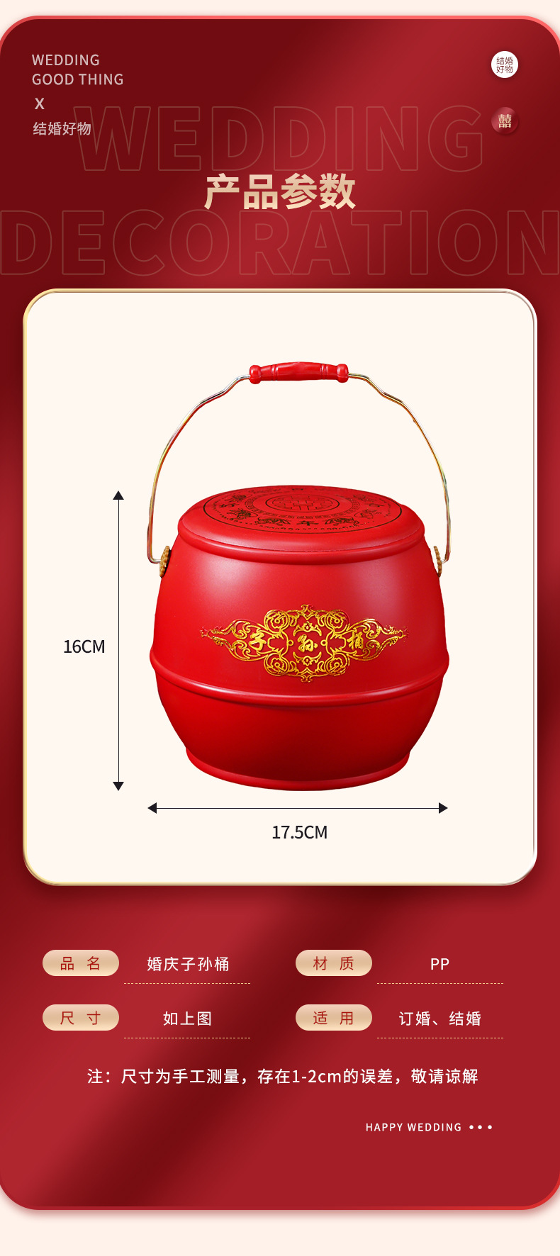 ウェディング用品、孫のバケツバッグ、花嫁の持参金、ウェディングバケツ、プラスチックトイレ、孫のバケツ、ウェディング用品