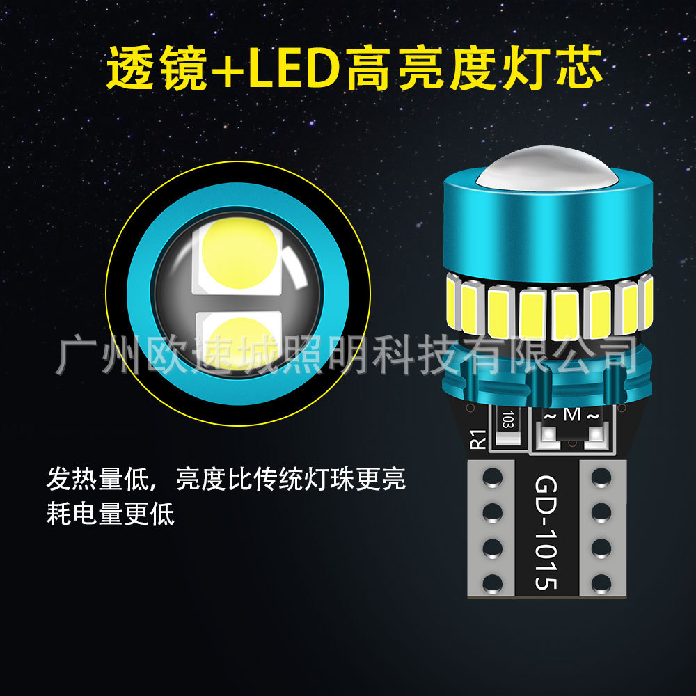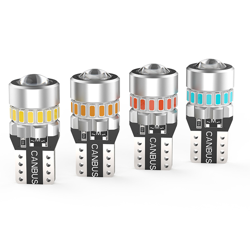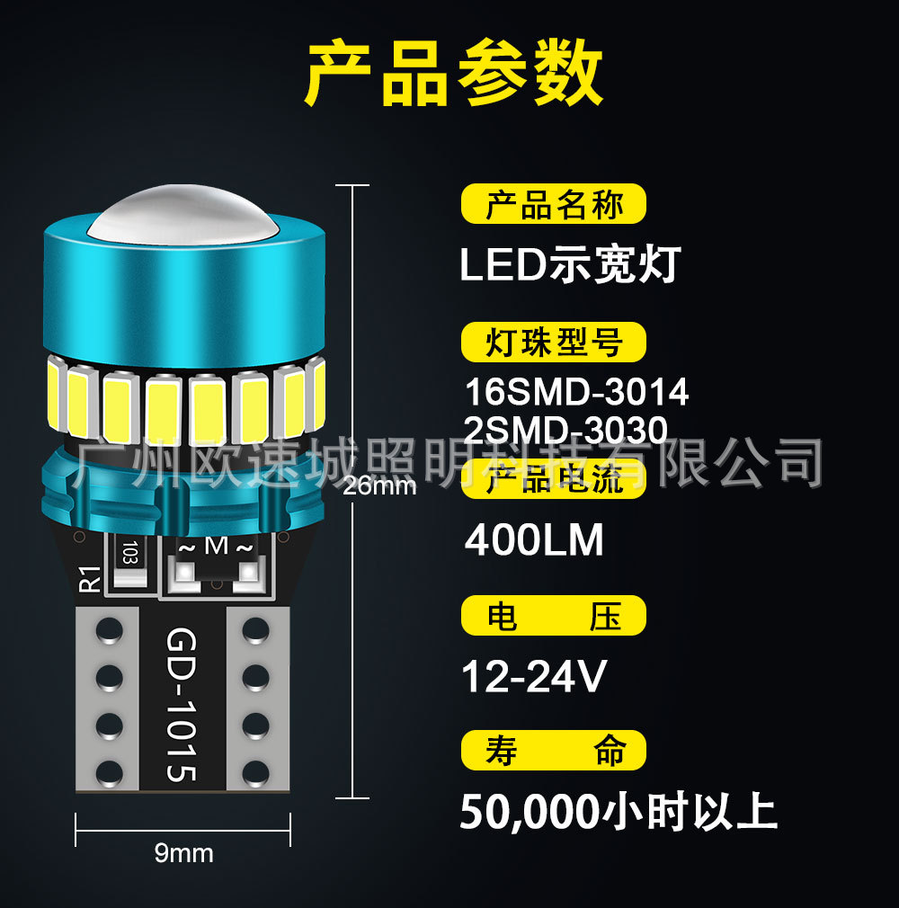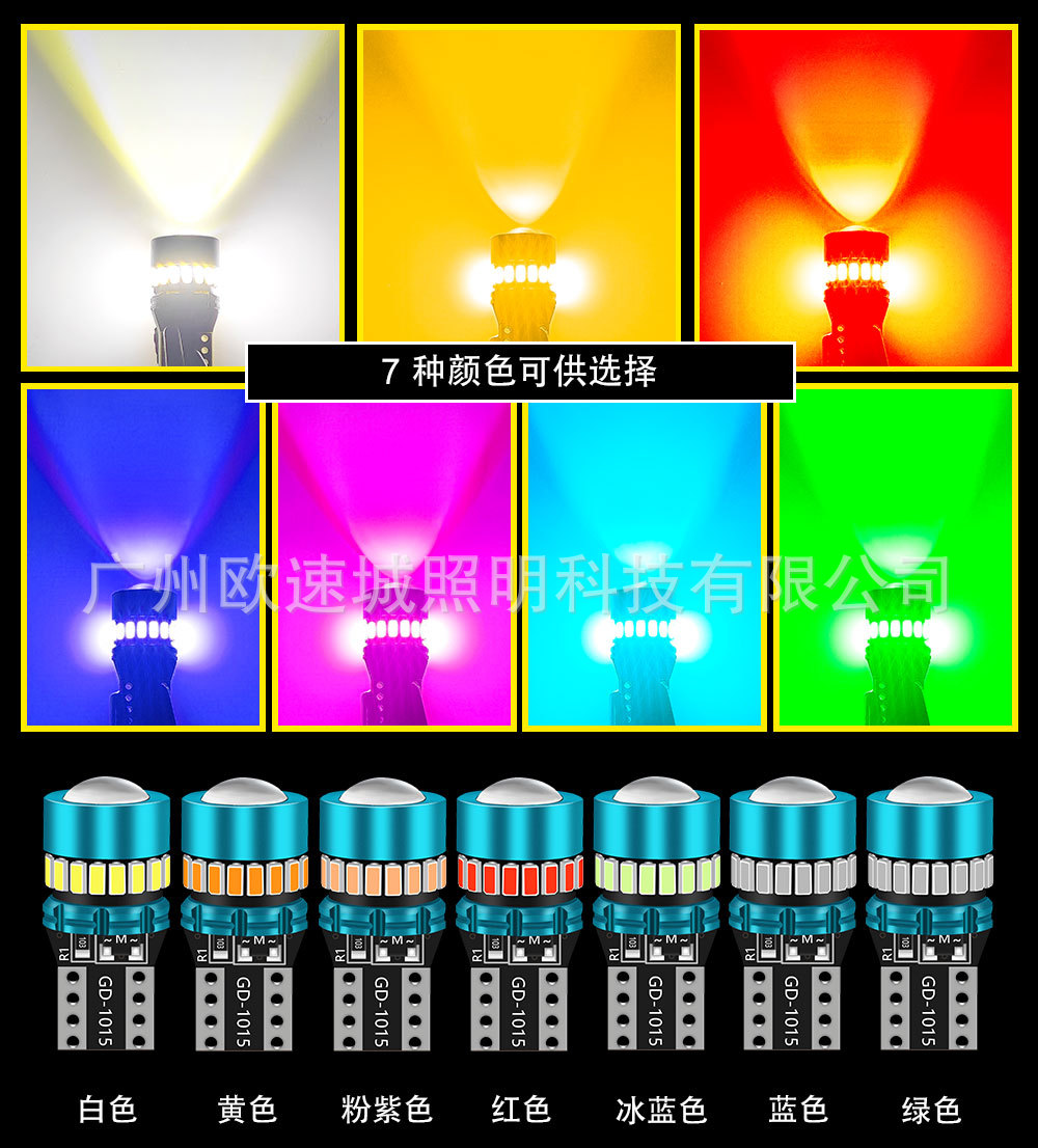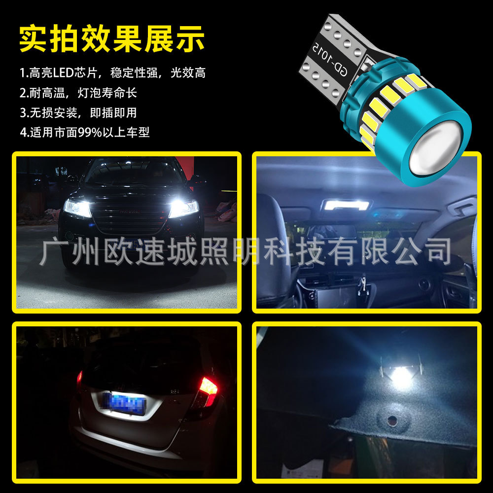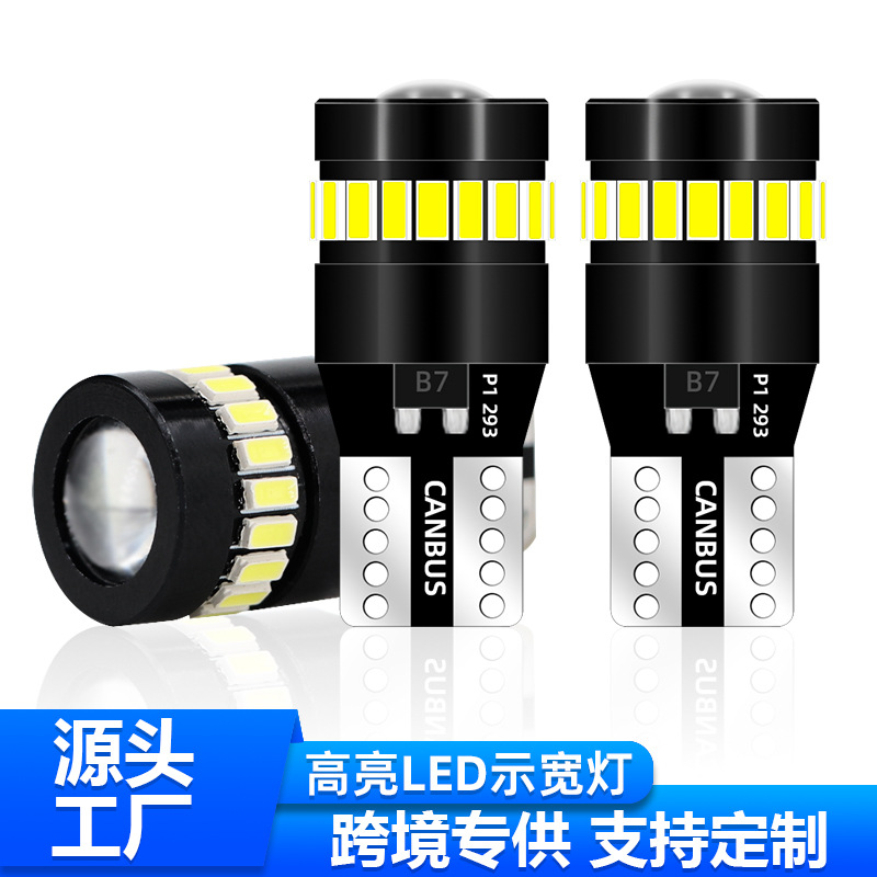 爆款汽车LED车灯t10示宽灯3014+18smd带透镜解码牌照灯3030仪表灯