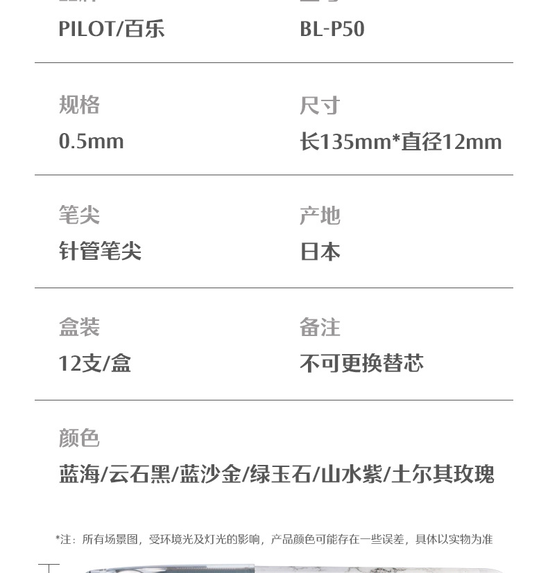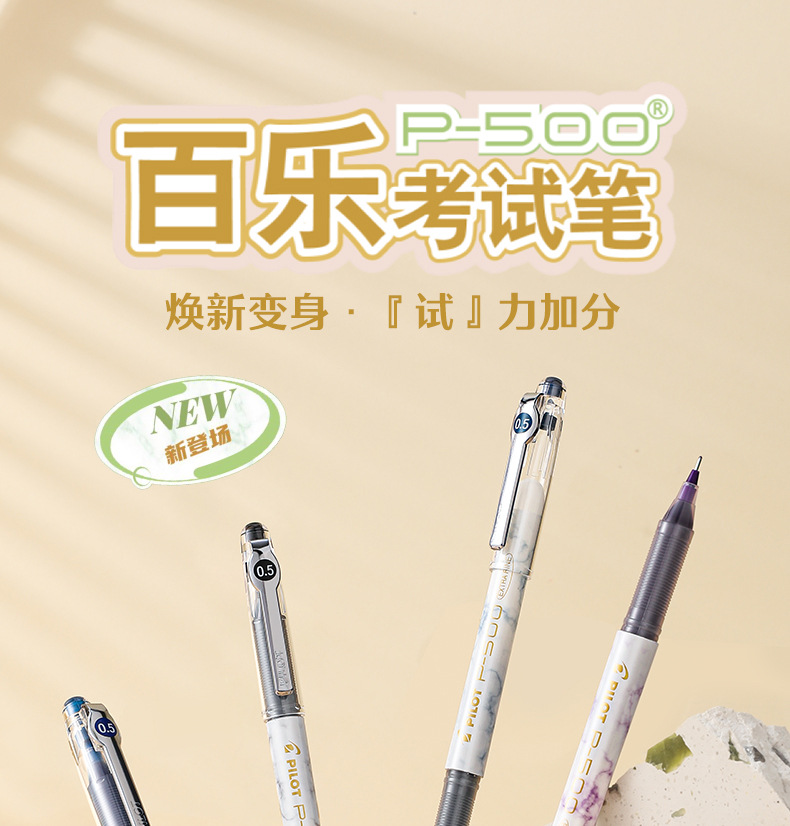 日本百乐P500金标针管中性笔直液式学生专用考试水笔0.5mm签字笔