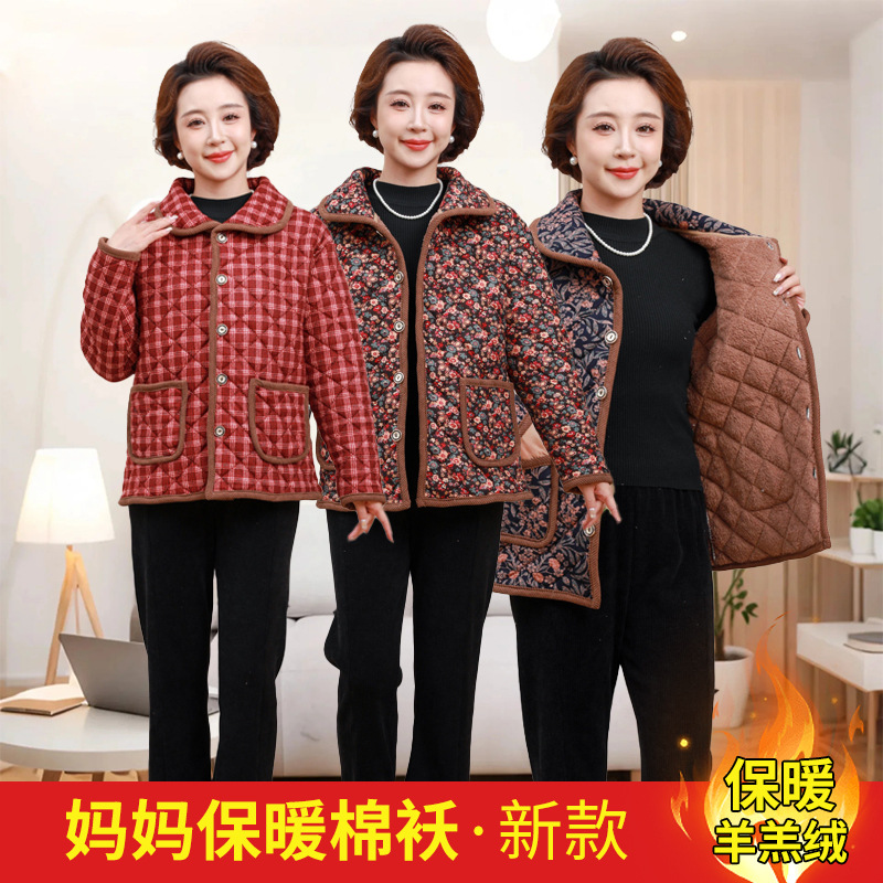 中老年妈妈女装加绒棉衣冬装保暖棉服新款大码防寒棉袄外套百搭款