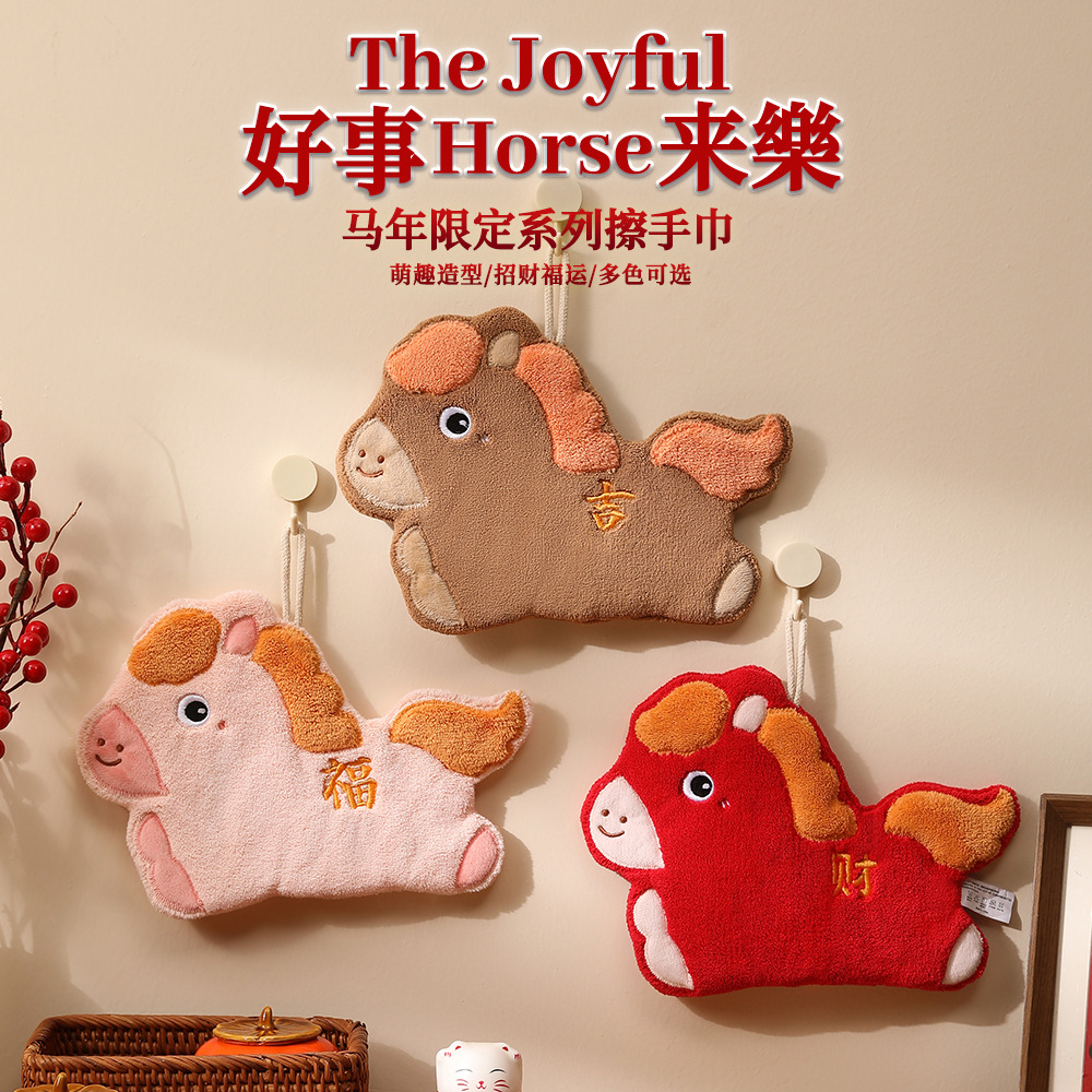 新年可爱珊瑚绒擦手巾加厚吸水毛巾喜庆礼品挂式手帕伴手礼挂饰