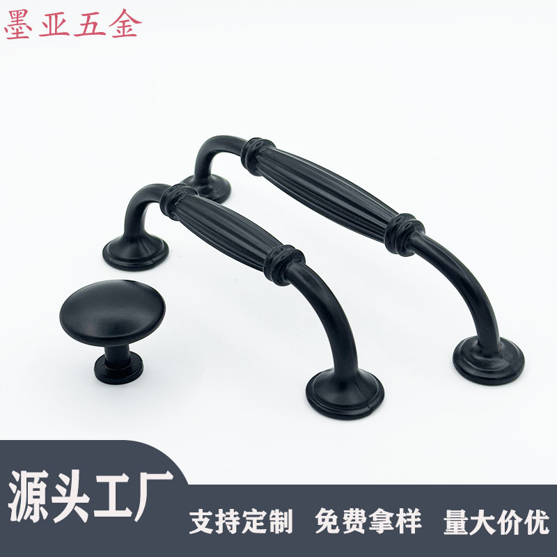 工場直接供給のシンプルなワードローブキャビネットドアハンドルアメリカンラインストライプマットブラックアルミニウム合金ソリッド表面実装ハンドル