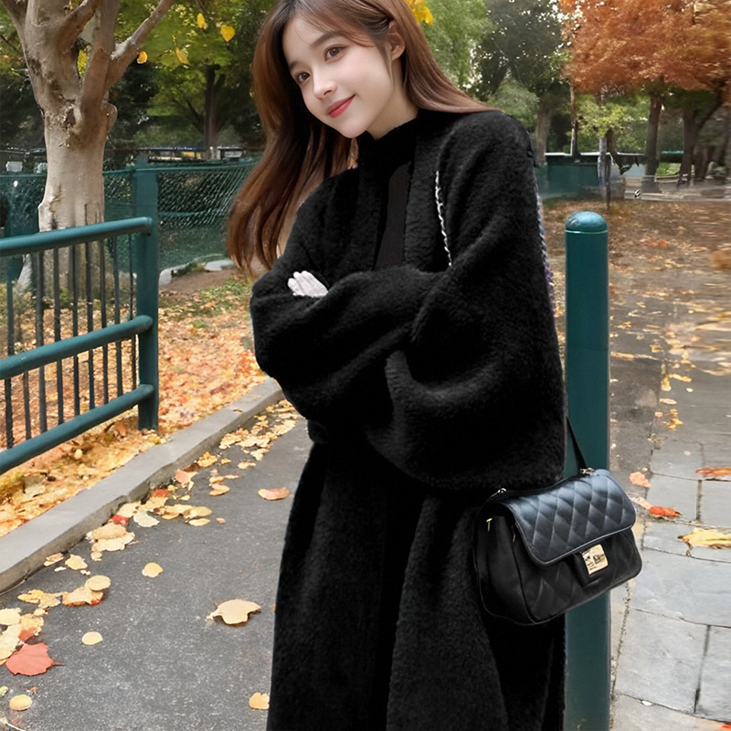 ミンクのセーターを編んだカーディガンのコートの女性2024の新しい秋冬の長さはゆったりしています。
