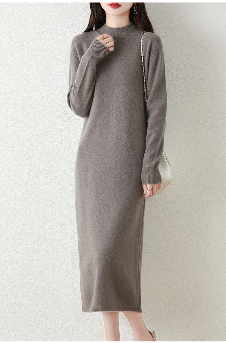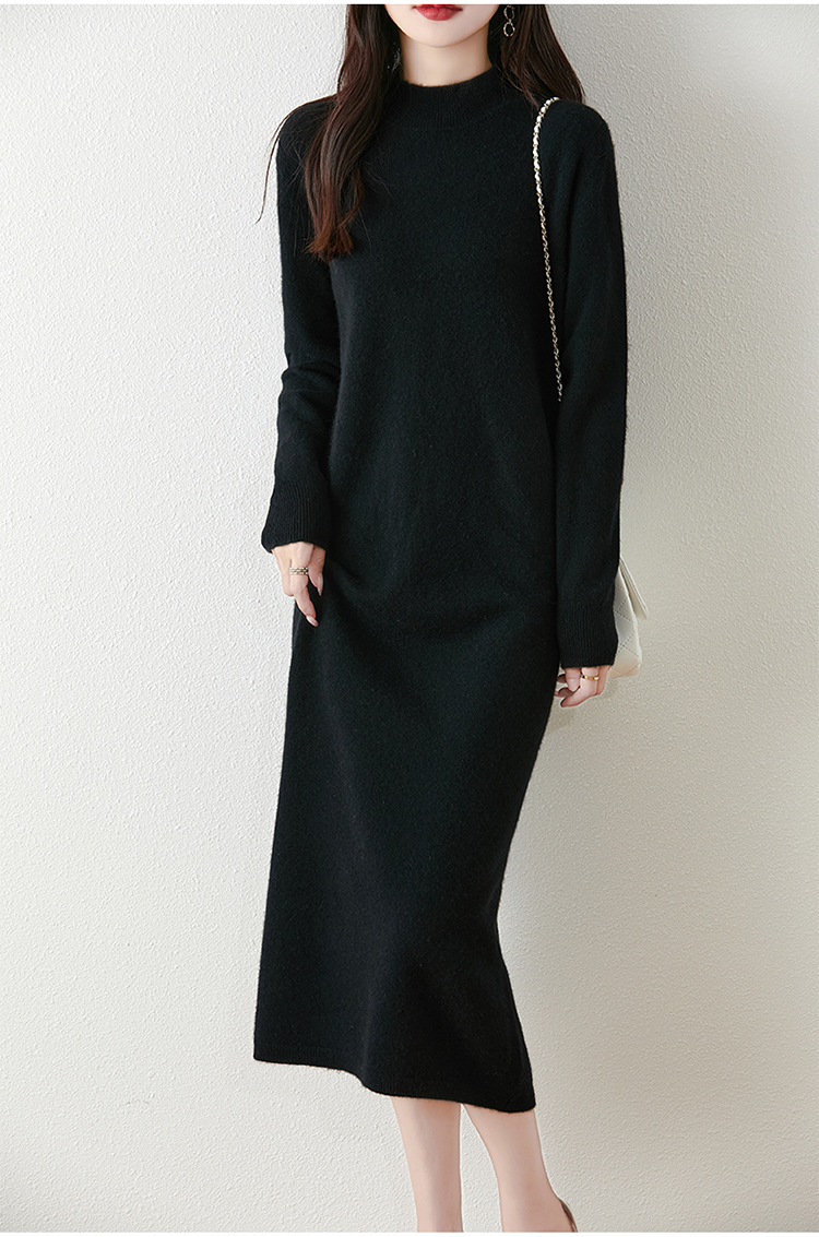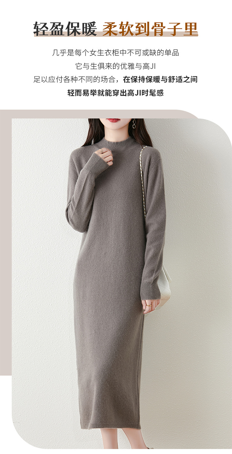 2025秋冬新款100纯羊毛连衣裙女半开拉链中长款针织羊绒过膝长裙