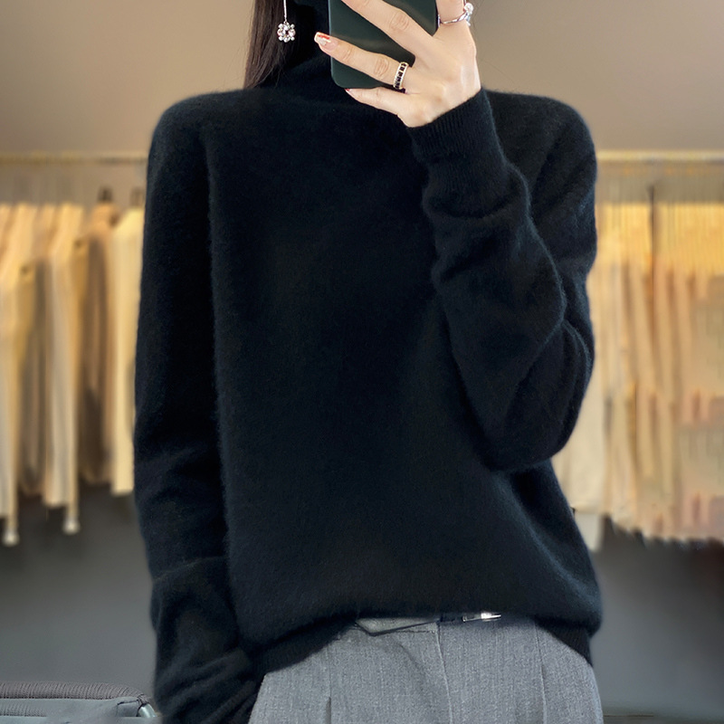 ニットシャツを身に着けた女性の新商品2024秋冬半高襟長袖ニット内にセーターの上着を着た黒