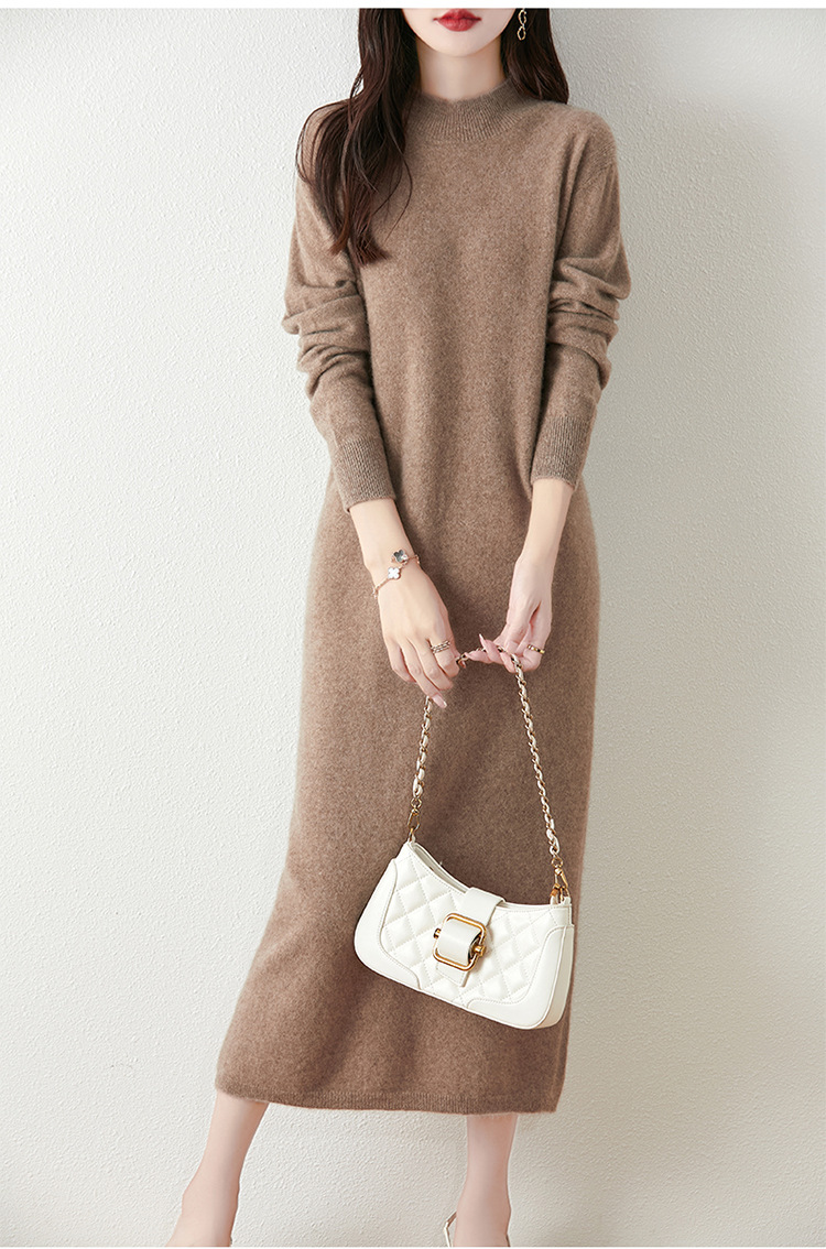 100%纯羊毛高领针织连衣裙女2025新款秋冬长款过膝内搭打底长裙