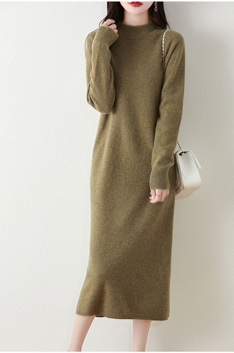 100纯羊毛针织连衣裙女半高领2025新款秋冬长款过膝内搭打底长裙