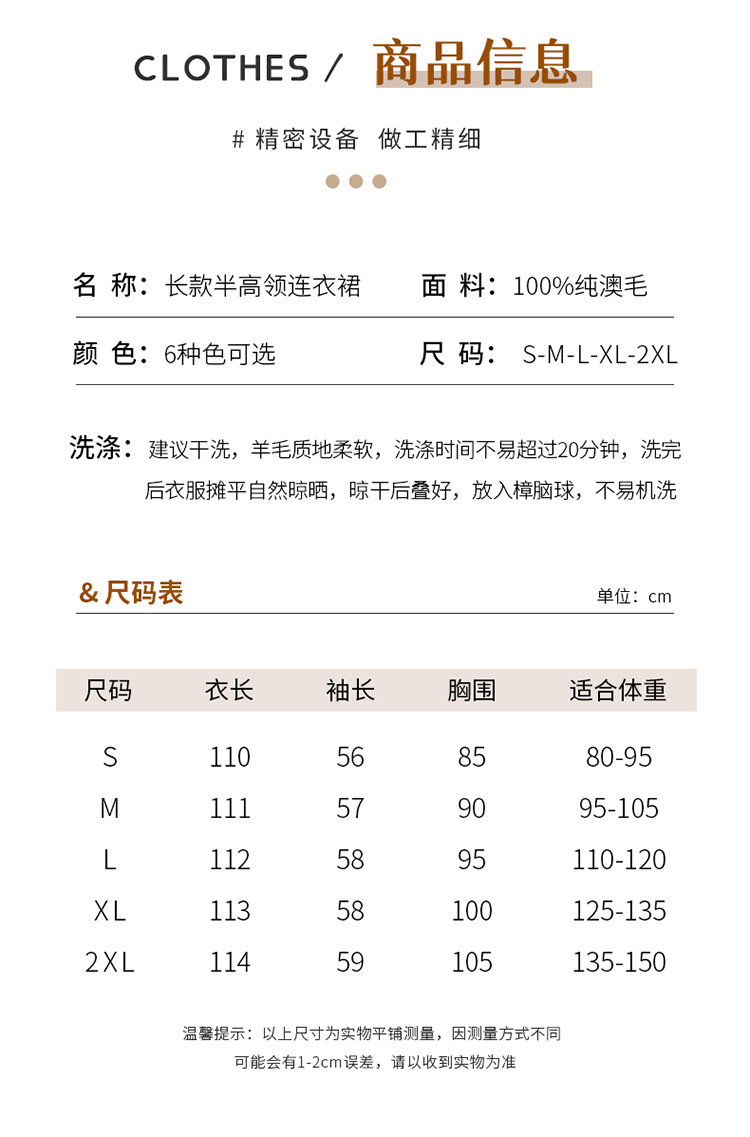秋冬半高襟100純ウールスカート長毛ワンピース