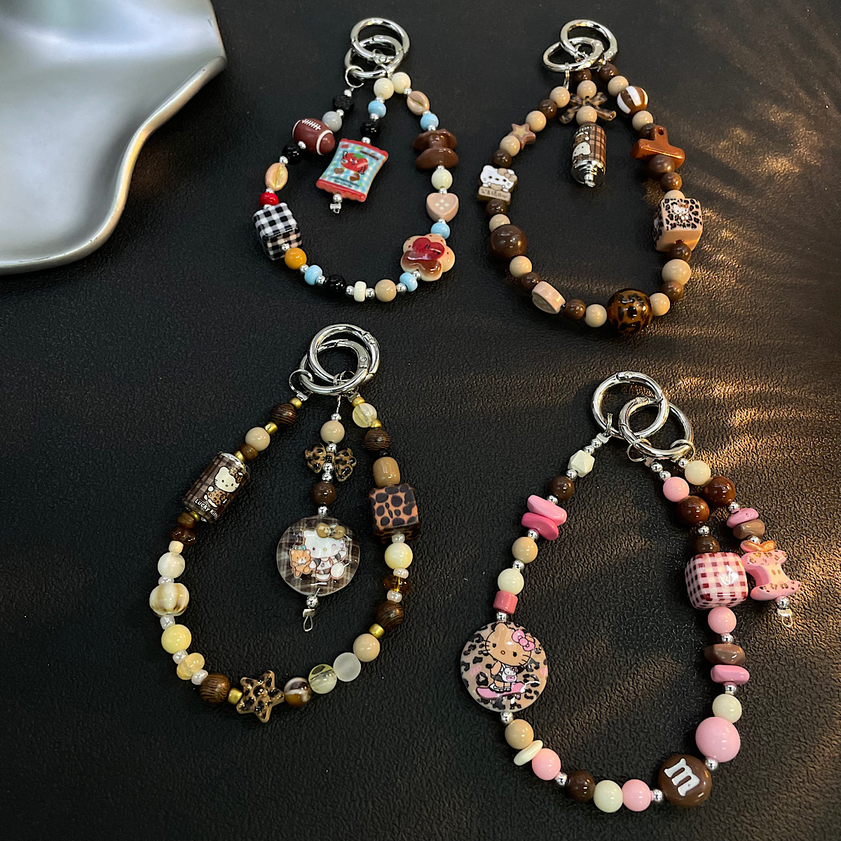 多巴胺色滑板kitty'串珠手机链包包挂件可爱卡通手机挂绳钥匙扣
