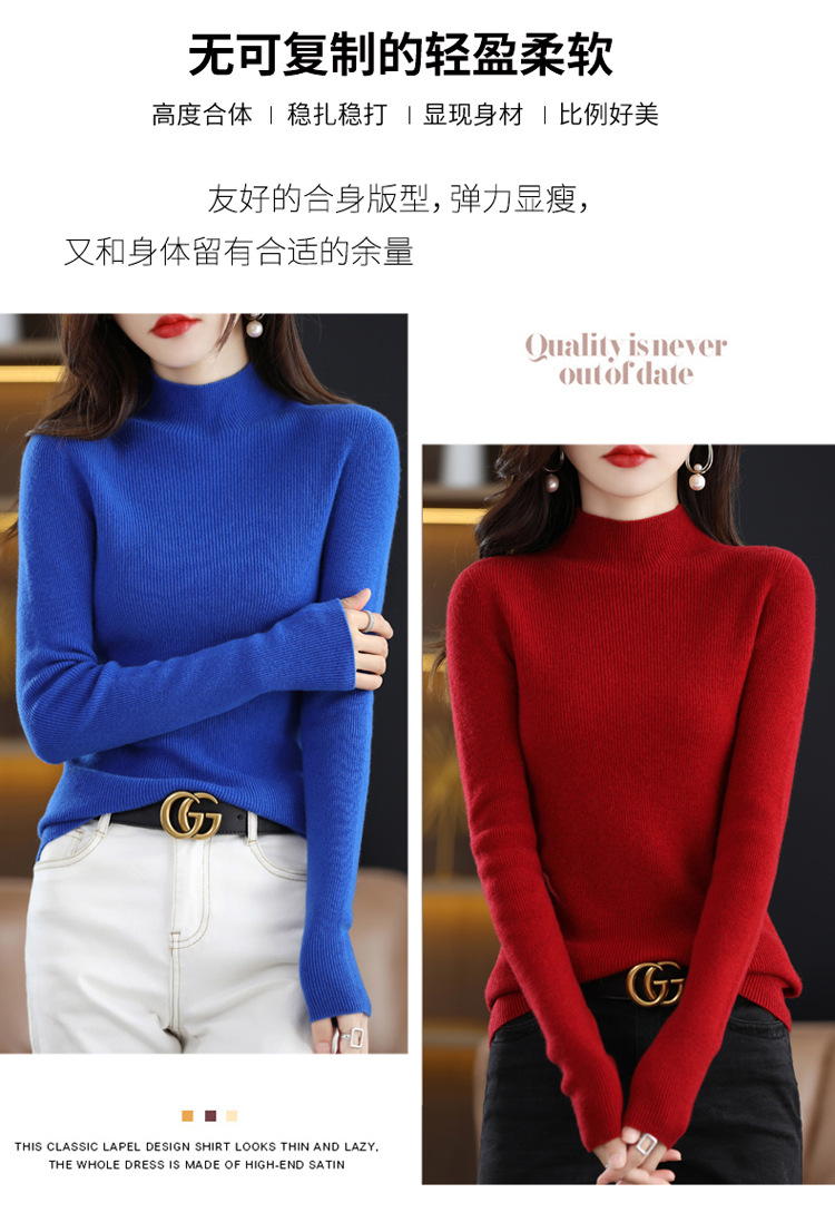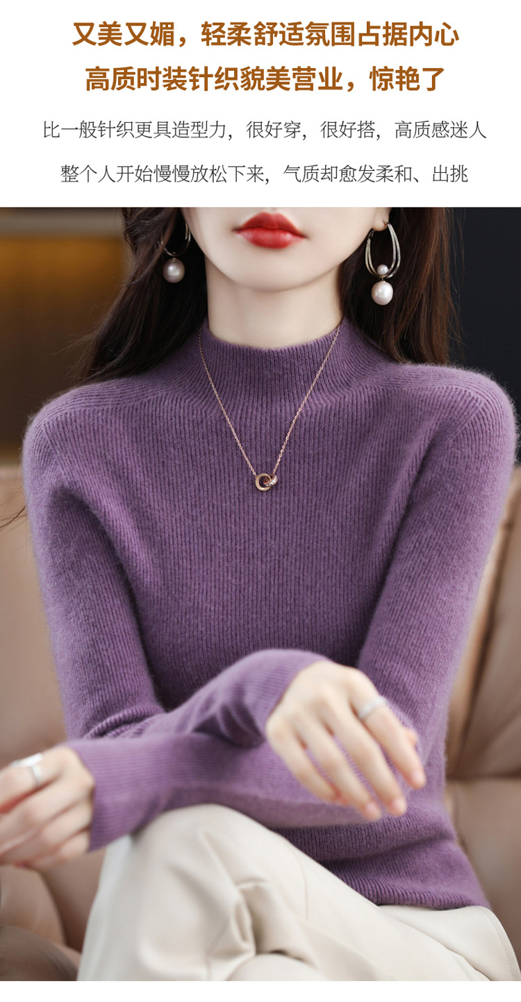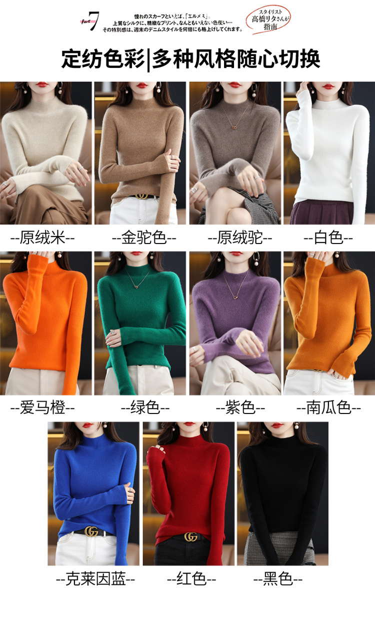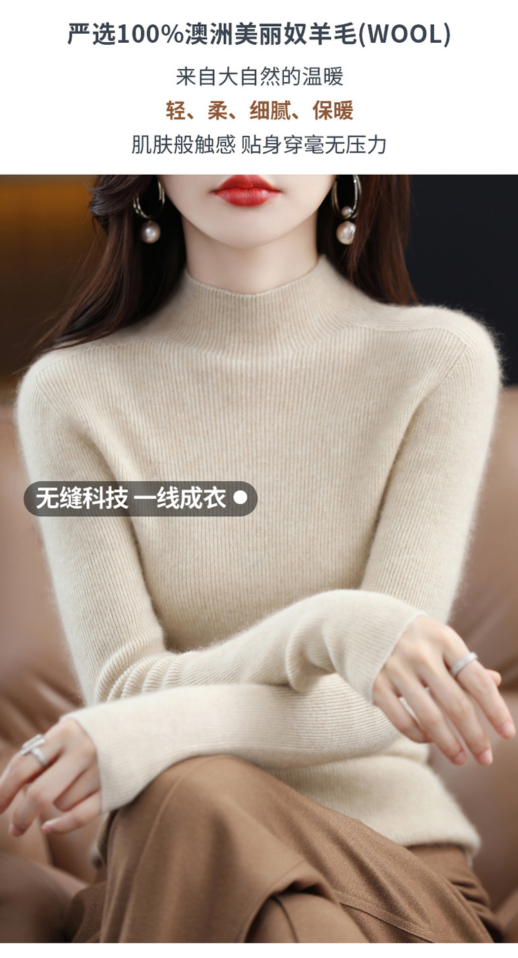 【59.9元包邮】100%纯羊毛衫女半高领毛衣一线成衣无缝一体