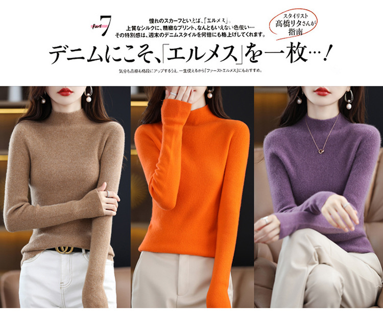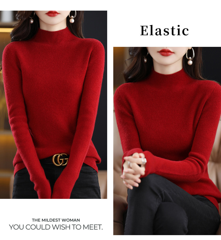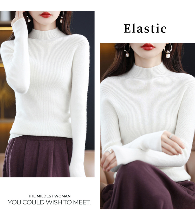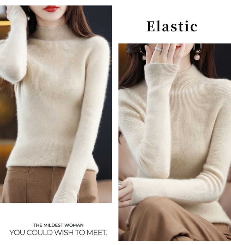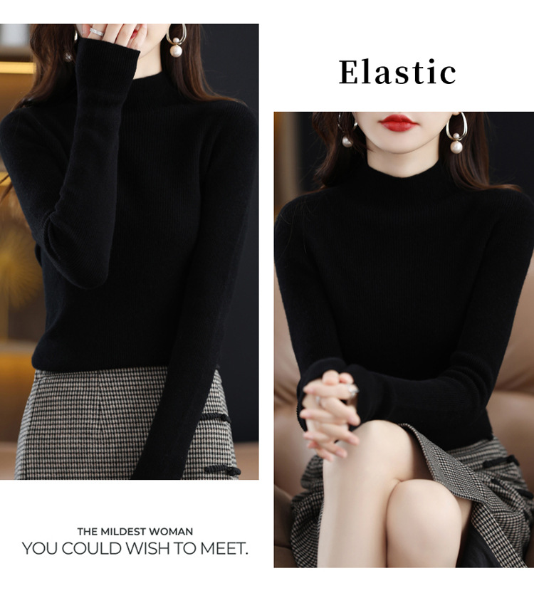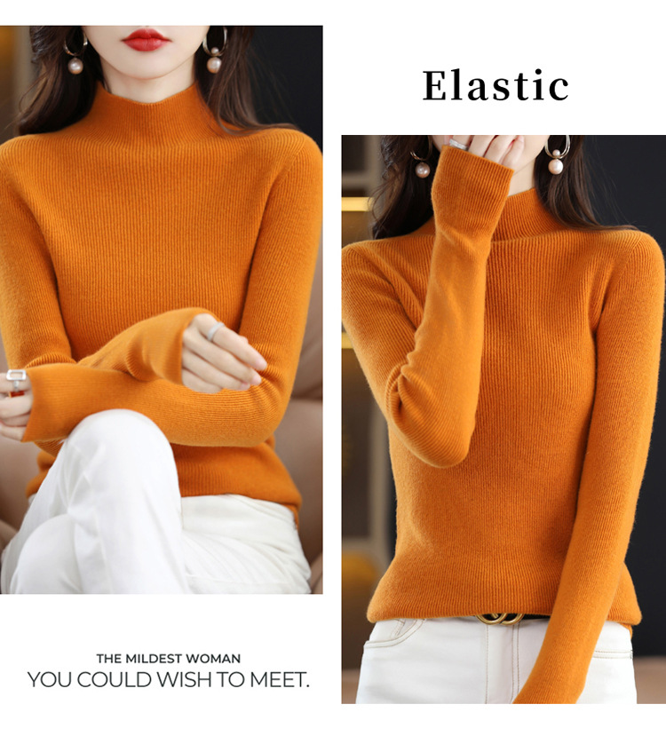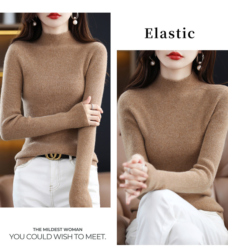 【59.9元包邮】100%纯羊毛衫女半高领毛衣一线成衣无缝一体