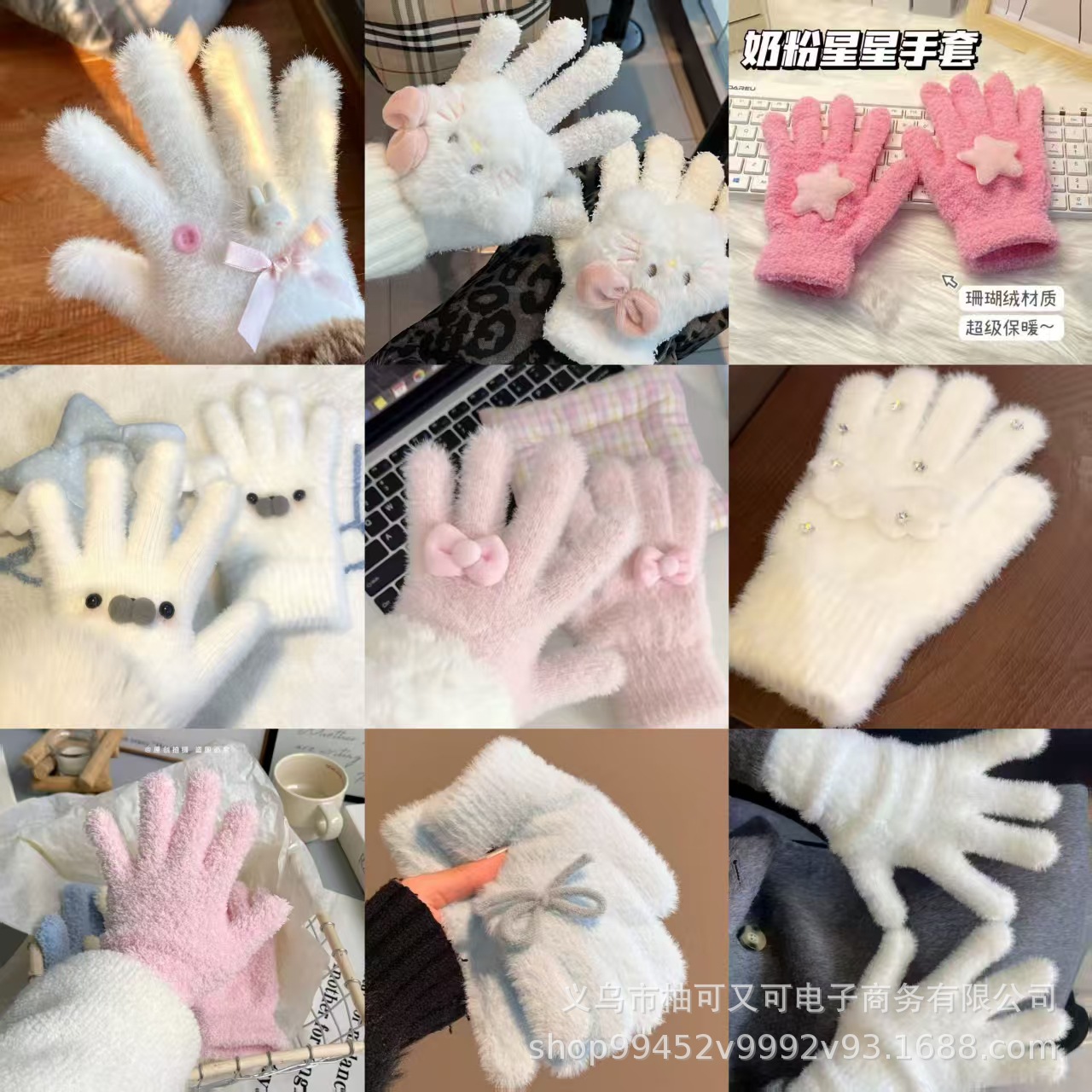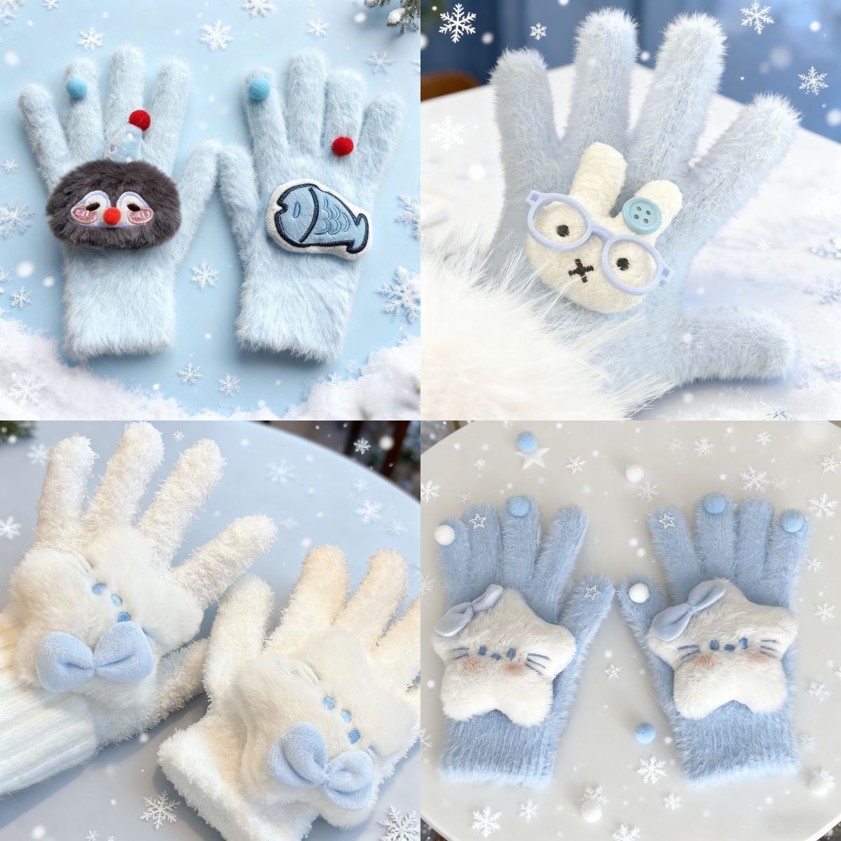 冬季可爱小猫兔子手套女保暖毛茸茸手套星星学生五指手套骑车防寒