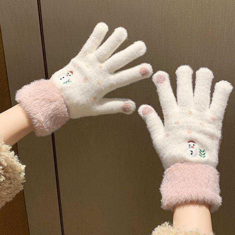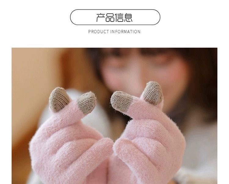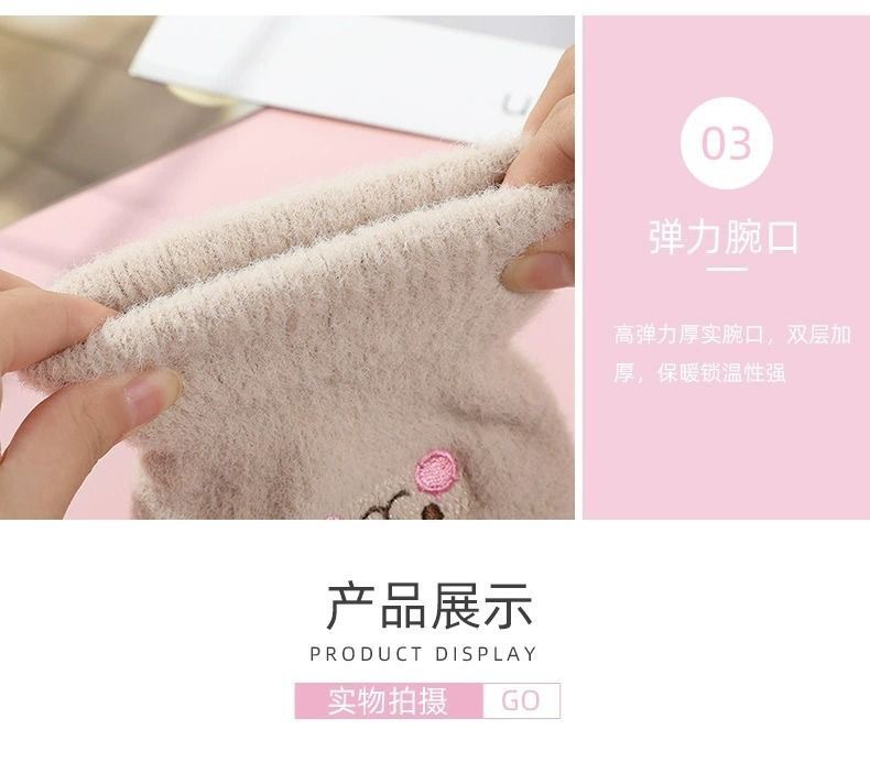 手套冬季女可触屏户外骑行毛绒可爱保暖加绒加厚学生毛线针织批发