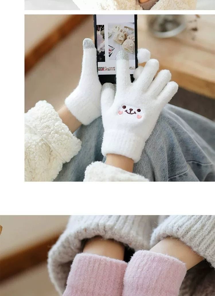 韩版可爱熊卡通学生写字加绒加厚保暖手套户外防寒骑行触屏手套