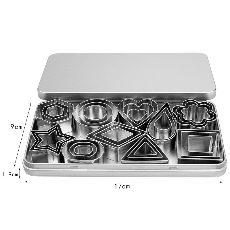 30件套不锈钢迷你翻糖饼干模具曲奇蔬菜按压切模几何图案烘焙工具