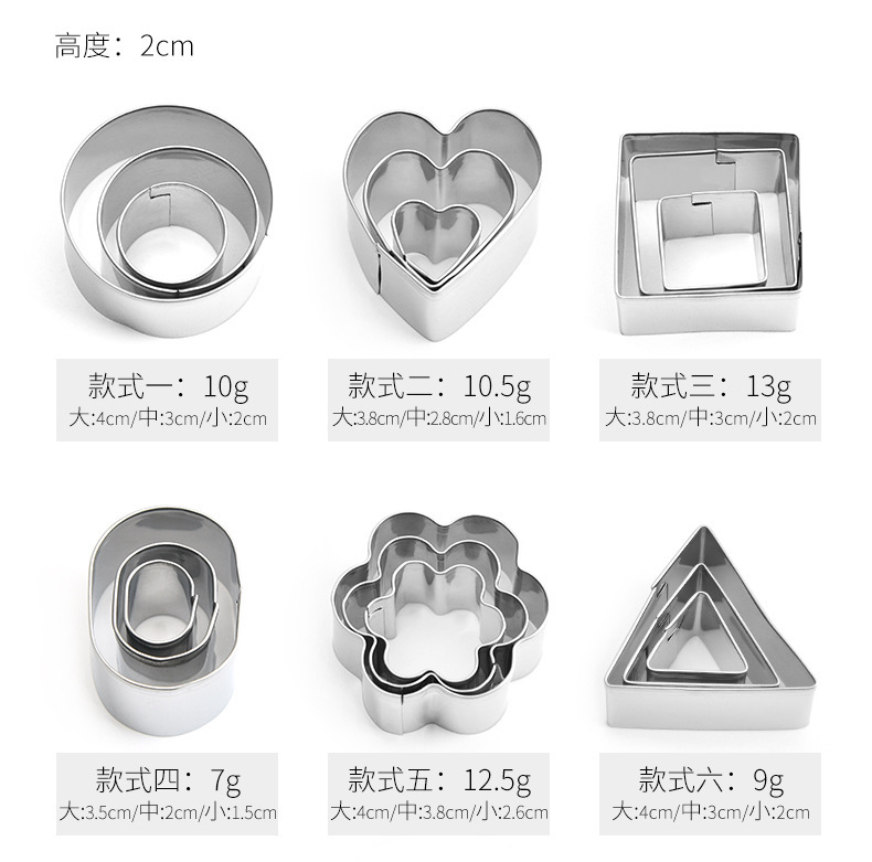跨境不锈钢花式30件套烘焙爱心几何切模饼干模具蛋糕星翻糖水果切