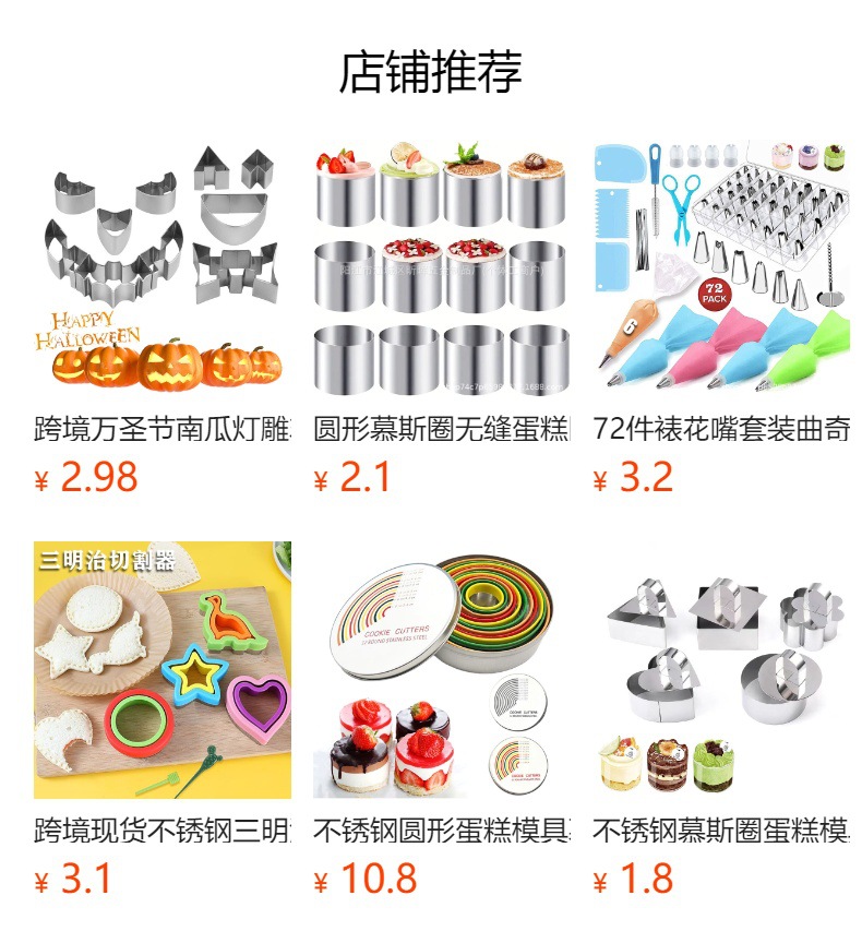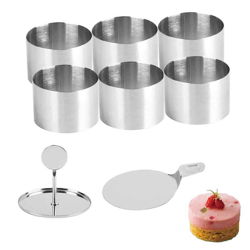 跨境无缝蛋糕圈模具6件套不锈钢慕斯圈圆形挞圈糕点饼干烘焙工具