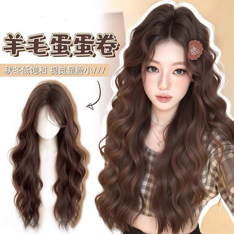 假发女韩系羊毛卷刘海长卷发冷棕色蛋蛋卷日常仿真人发整顶全头套