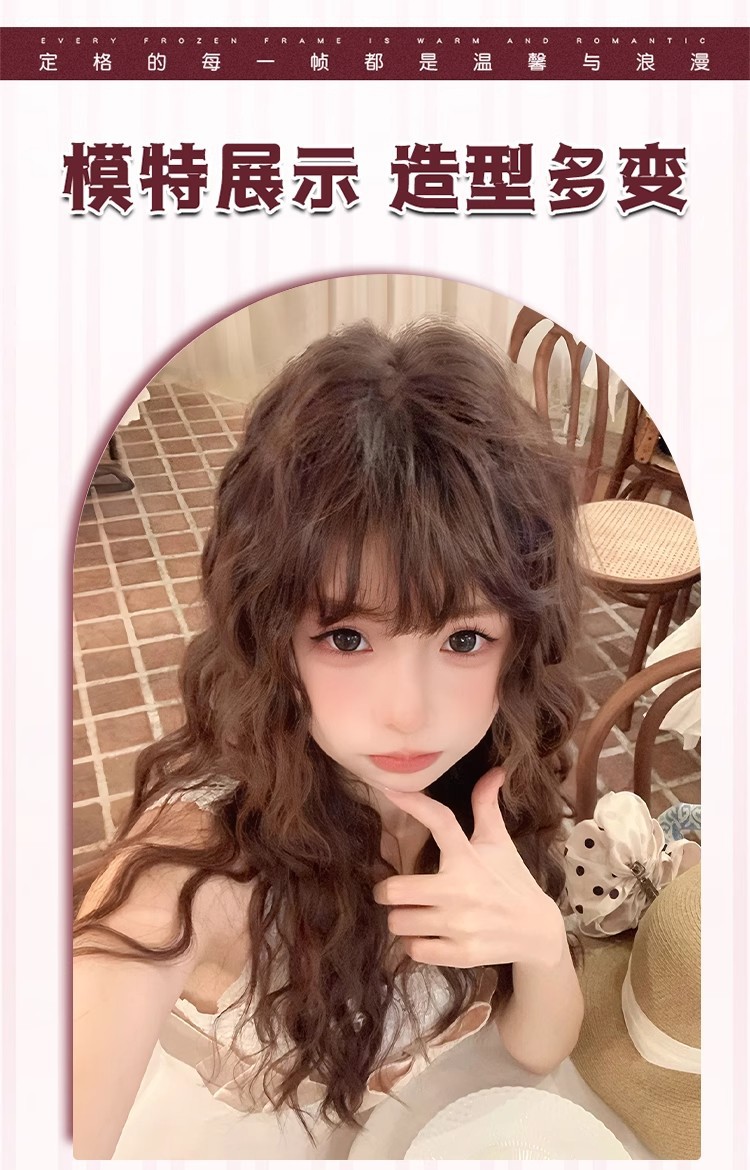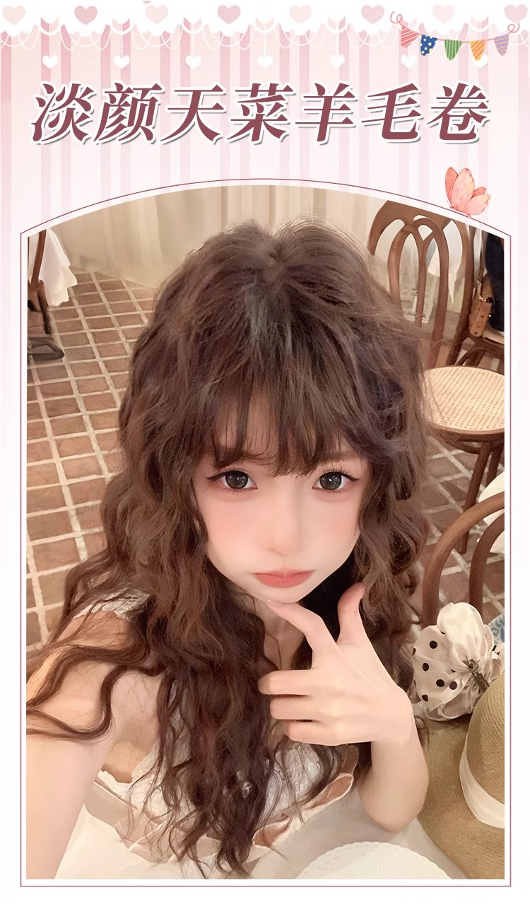 羊毛卷假发女长发减龄Lolita水波纹长卷发慵懒齐刘海蛋蛋卷全头套