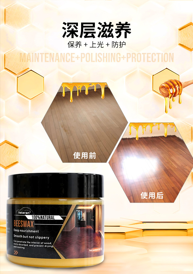跨境爆款批发Wood Seasoning Beewax家具护理抛光防水地板蜡蜂蜡