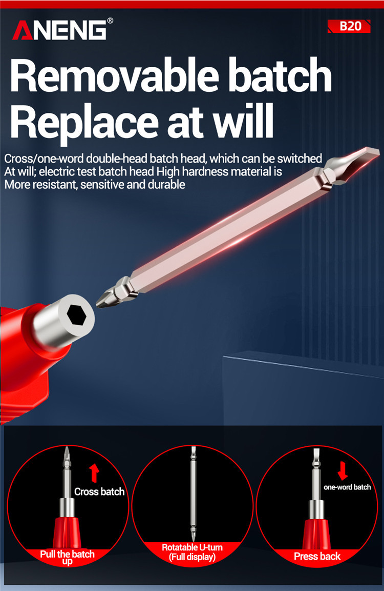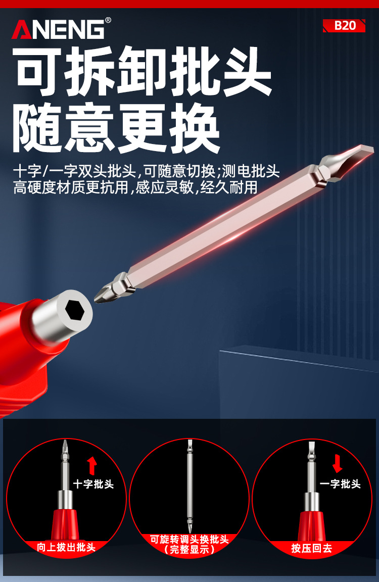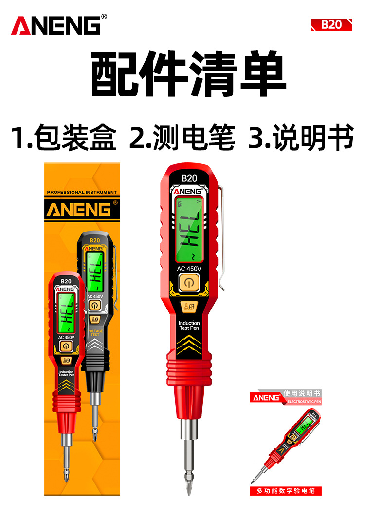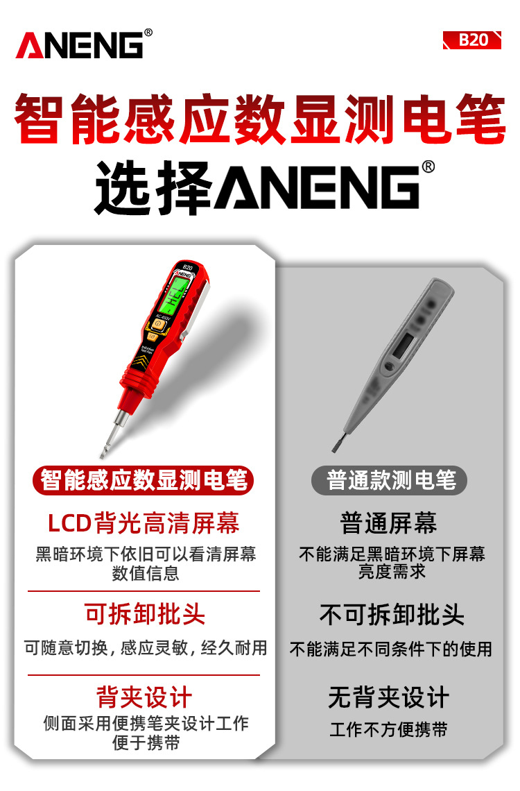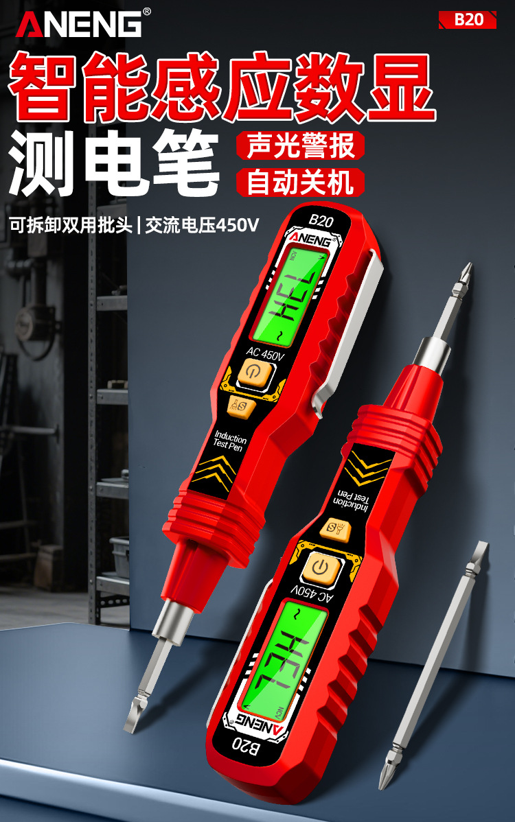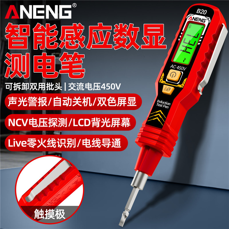 ANENG智能数显感应测电笔多功能两用批头可切换十字一字电工专用