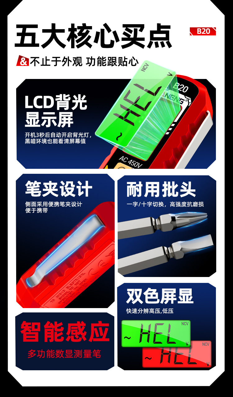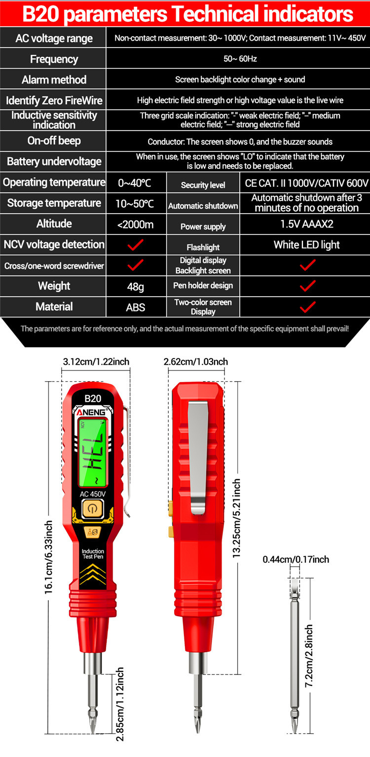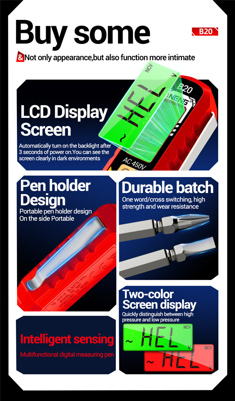 電気技師用電圧テストペン、電圧テストペン、断線・漏電テストペン、多機能デジタル表示テストペン、十字ドライバー、電気テストペン