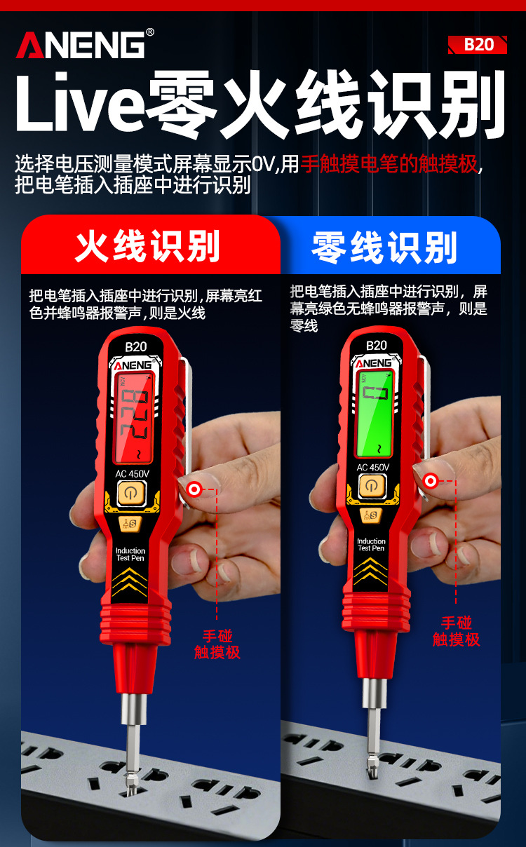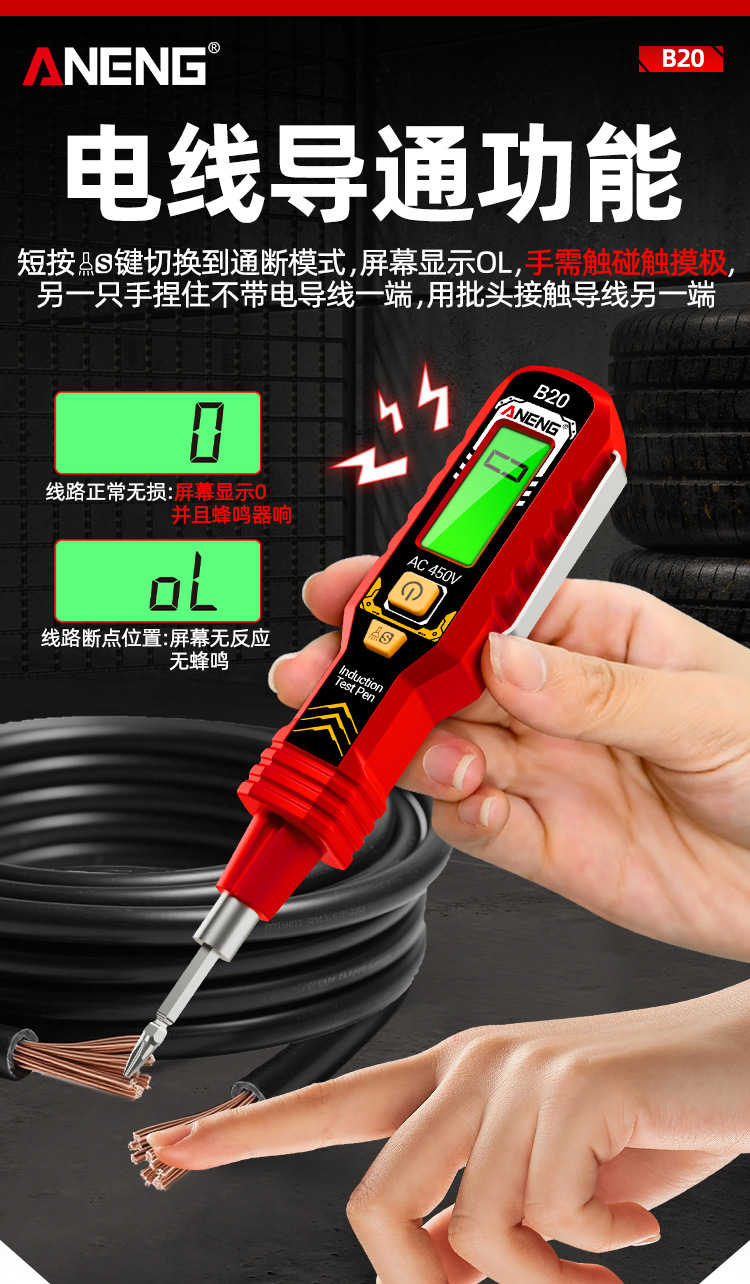 ANENG高精度知能測電ペンデジタル多機能誘導テストペン回路検出オンオフ測定電圧