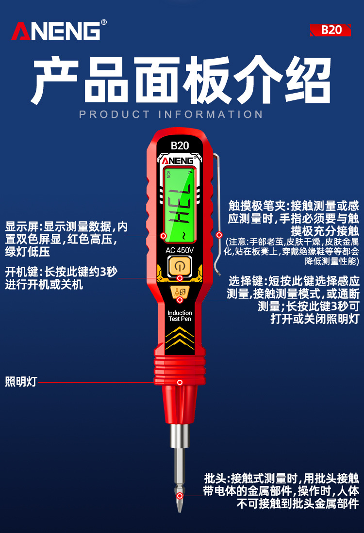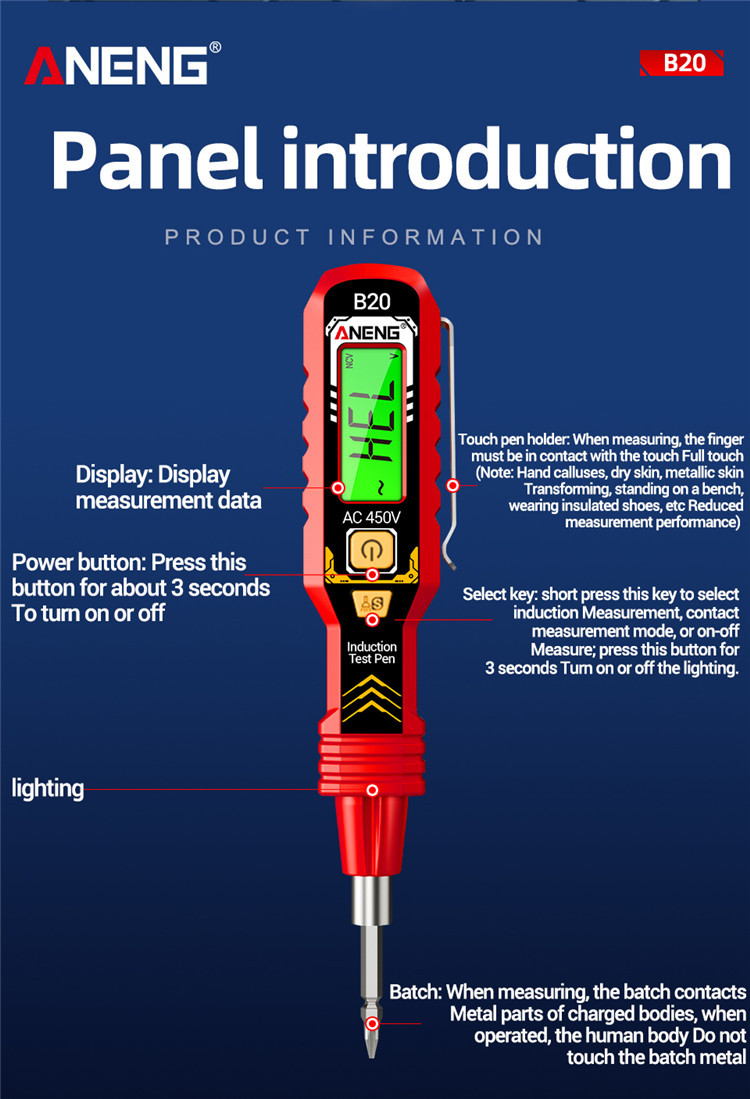 ANENG 新しい電気テストペン高精度電圧テスト多機能テストブレークポイントデジタル表示電気誘導テストペン