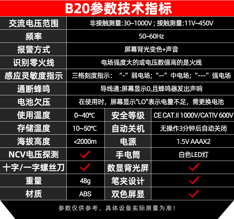 1ac-dテスター非接触式家庭用安全誘導式検電ペンledライトビープアラーム付き