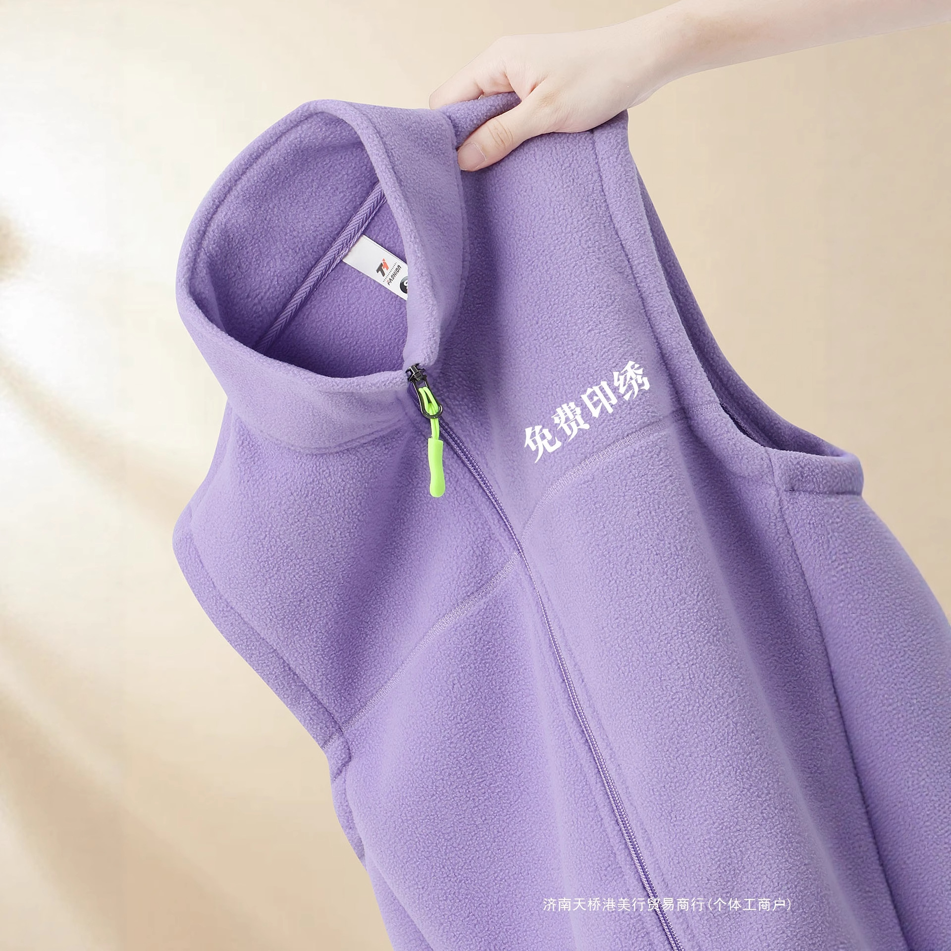 紫色摇粒绒马甲秋冬立领加厚抓绒保暖背心外穿超市工作服广告坎肩