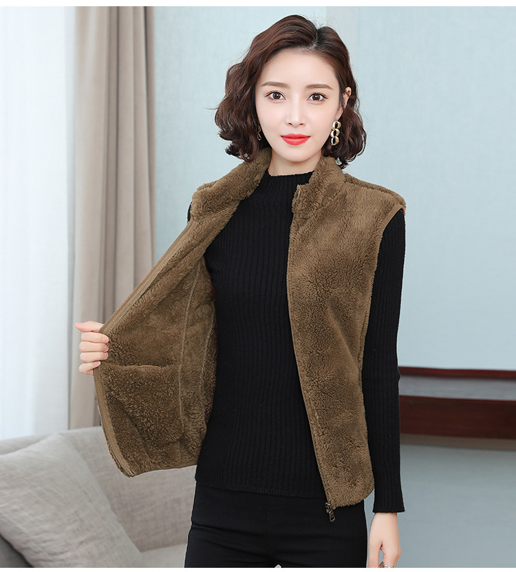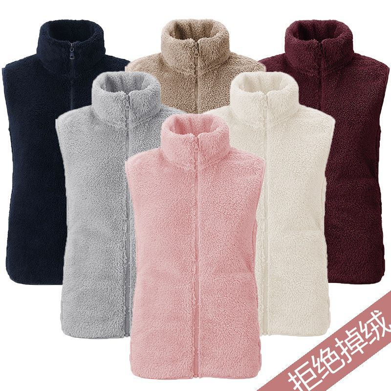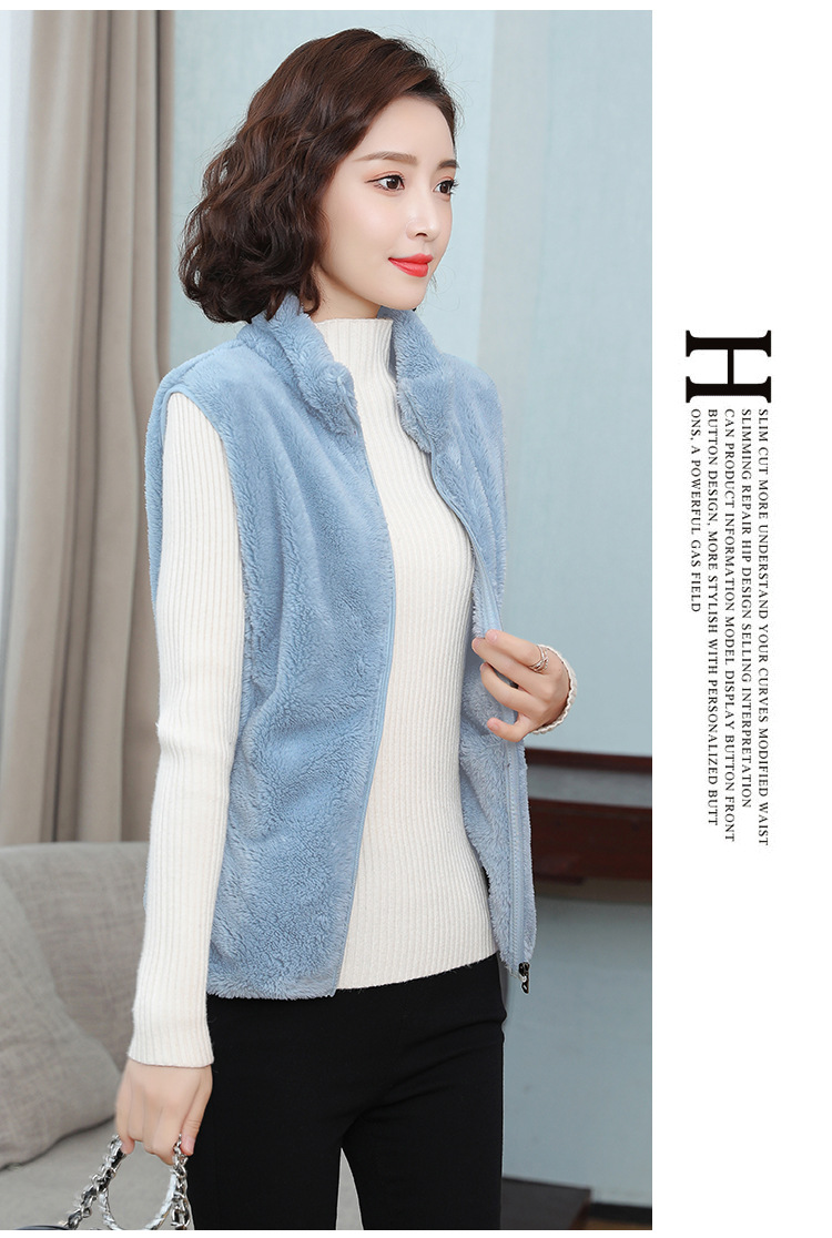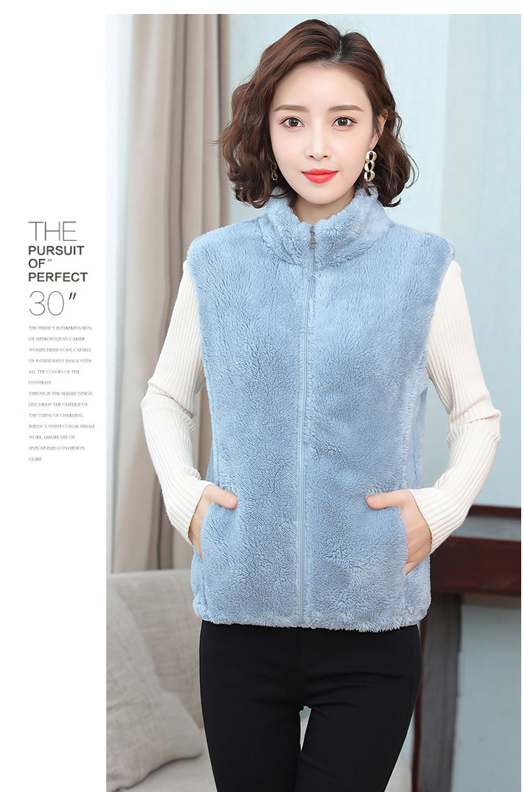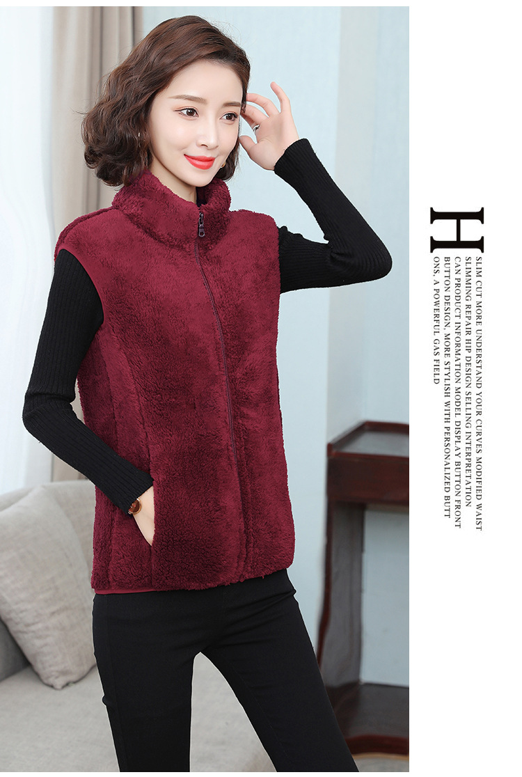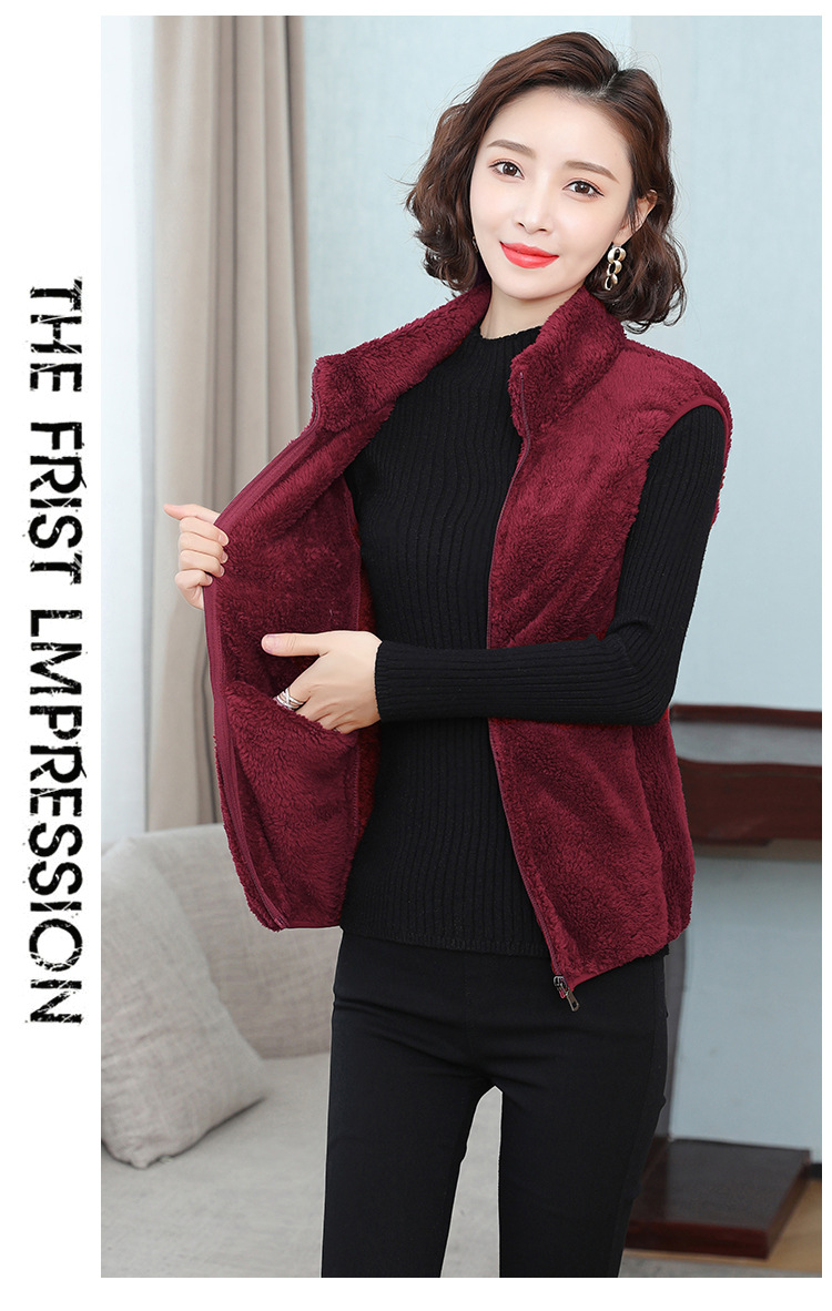 フリース馬甲の女性馬は秋の冬にベルベットの保温両面ベルベットの立襟ベストサンゴのベルベットの肩の短いコートを挟んでいる