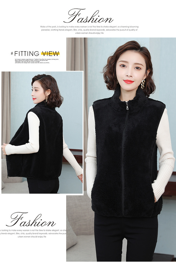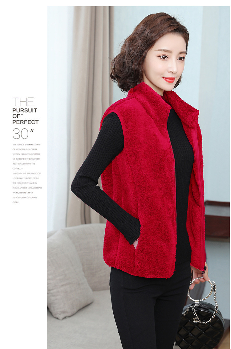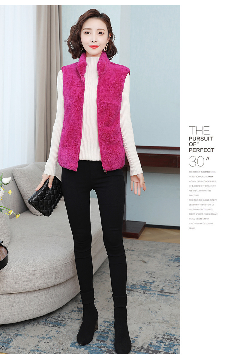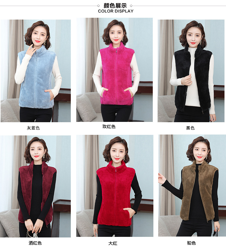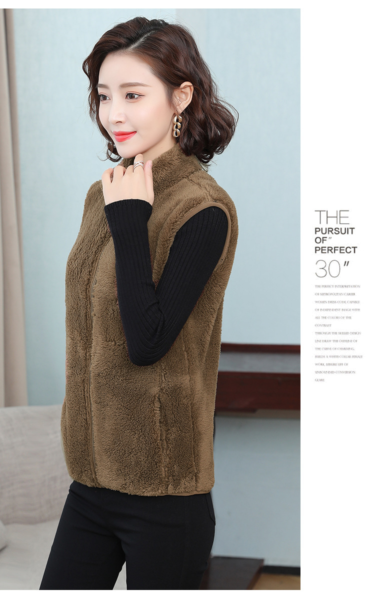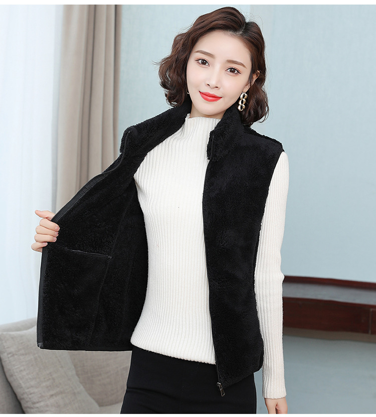 フリース馬甲の女性馬は秋の冬にベルベットの保温両面ベルベットの立襟ベストサンゴのベルベットの肩の短いコートを挟んでいる