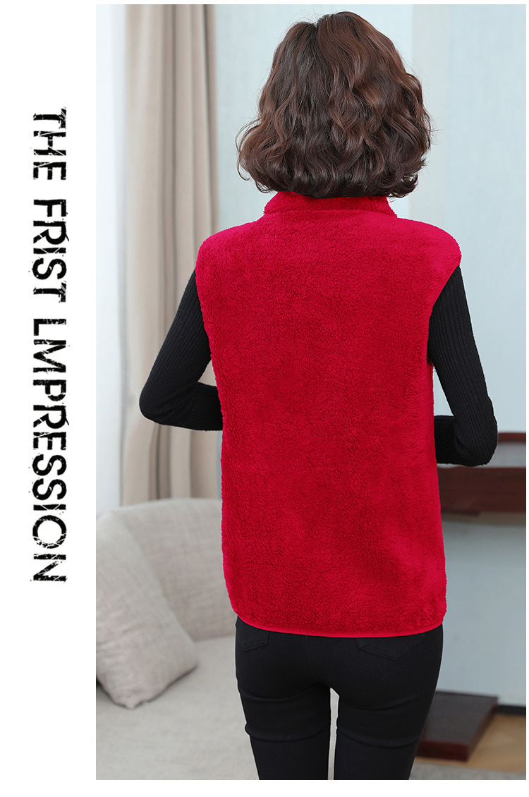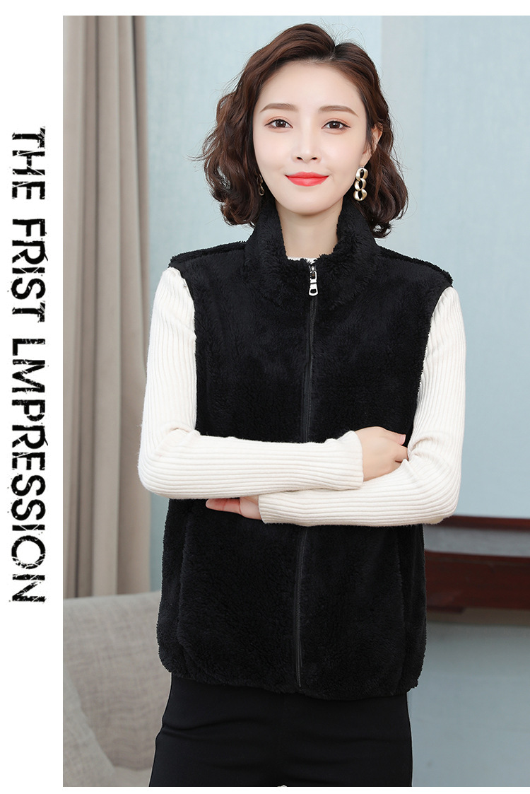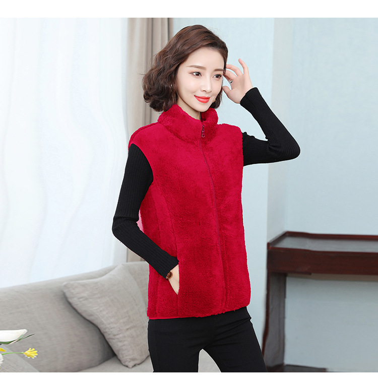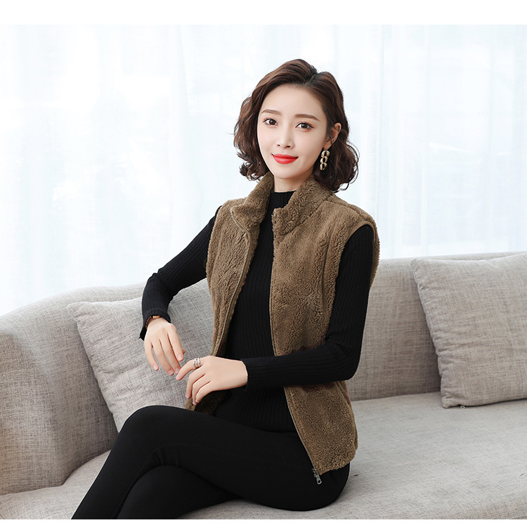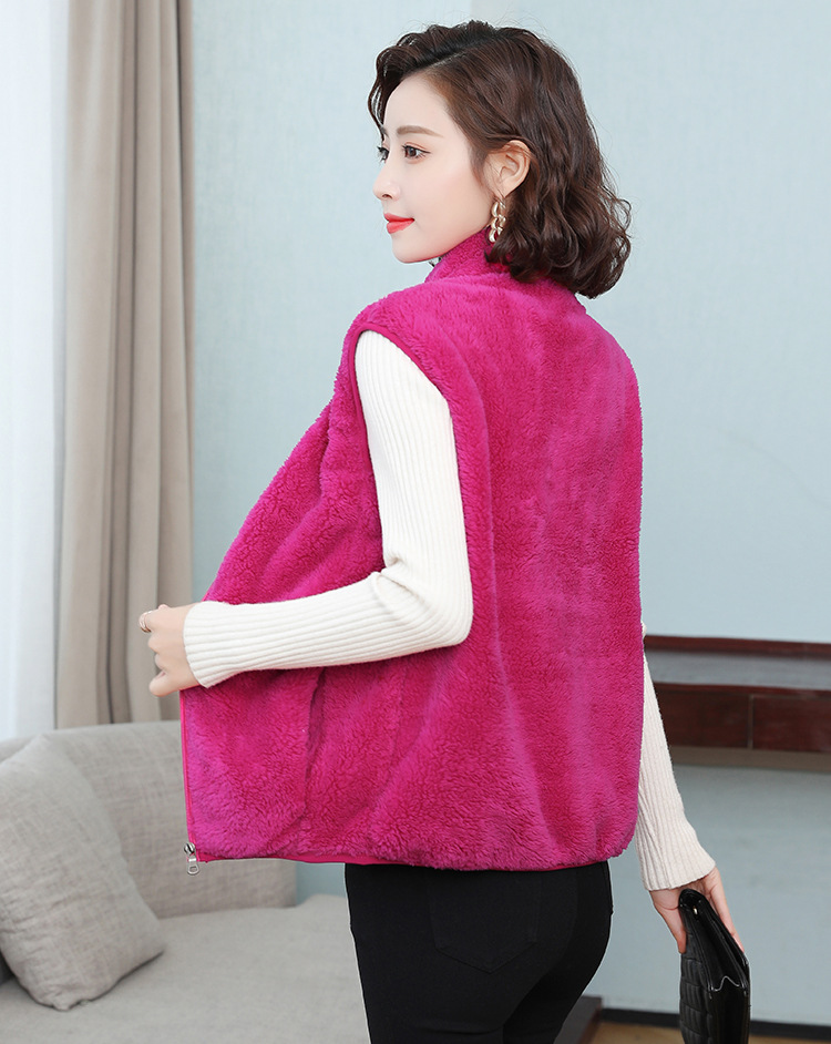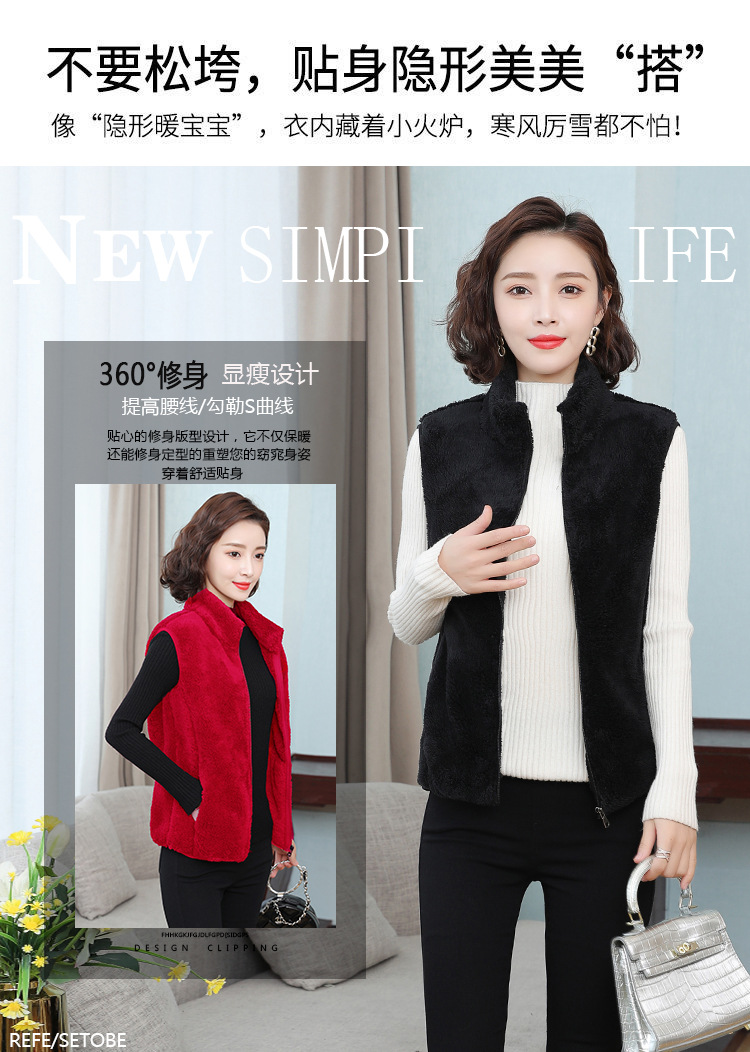 フリース馬甲の女性馬は秋の冬にベルベットの保温両面ベルベットの立襟ベストサンゴのベルベットの肩の短いコートを挟んでいる