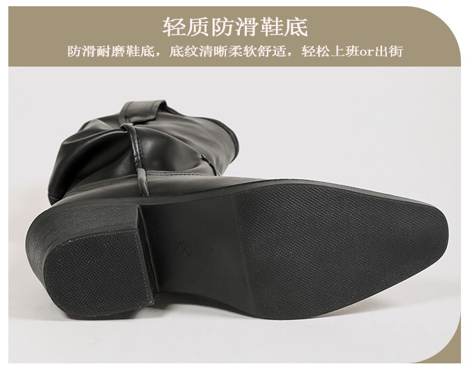 现货版复古中筒骑士靴马丁靴褶皱磨砂尖头粗跟V靴子显瘦堆堆靴女