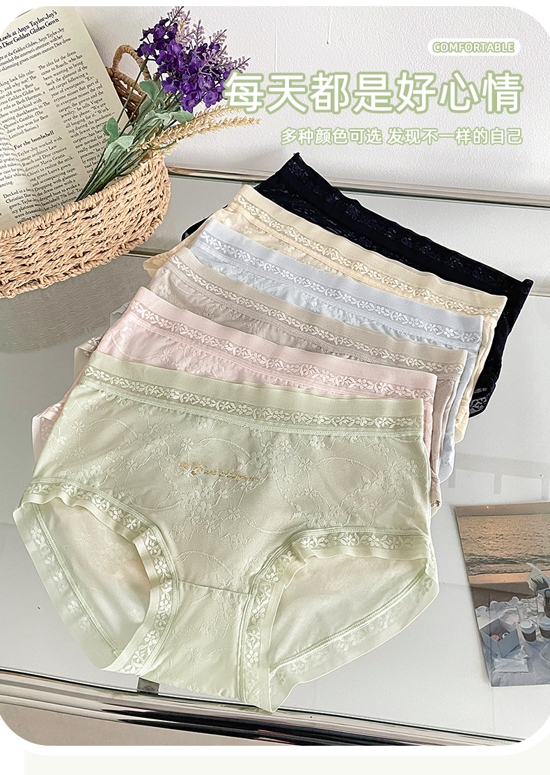高腰大码女士内裤提花网纱烫金字母全包臀无痕舒适加肥胖MM三角裤