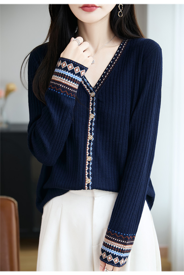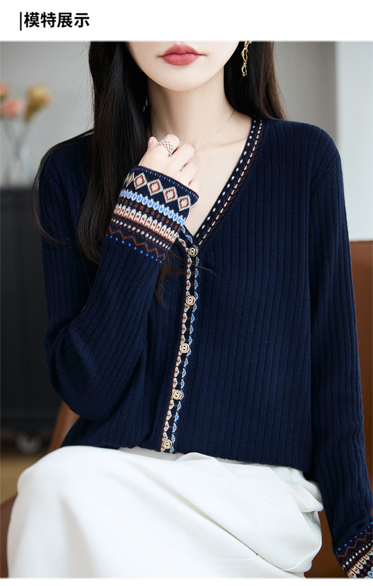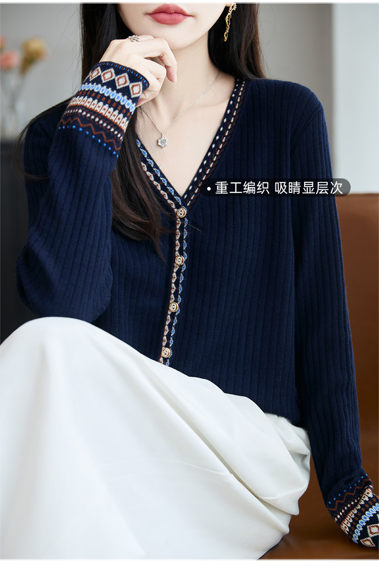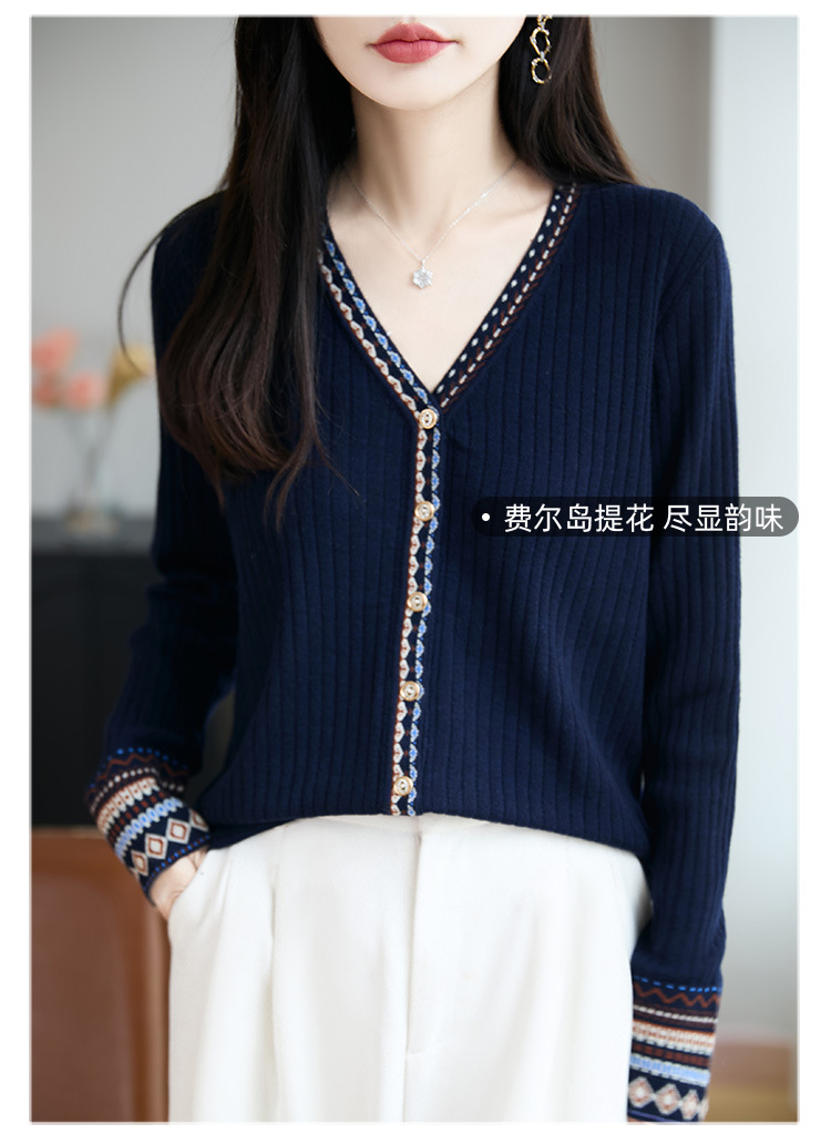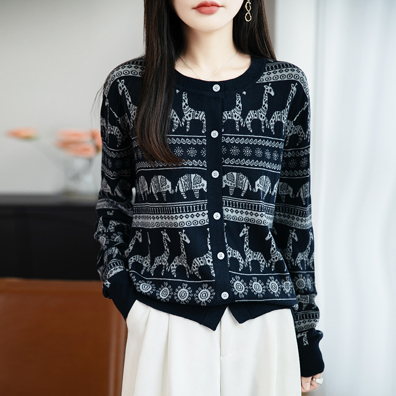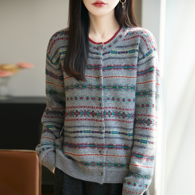 法式费尔岛提花开衫女秋冬新款加厚保暖毛针织衫打底毛衣女装外套