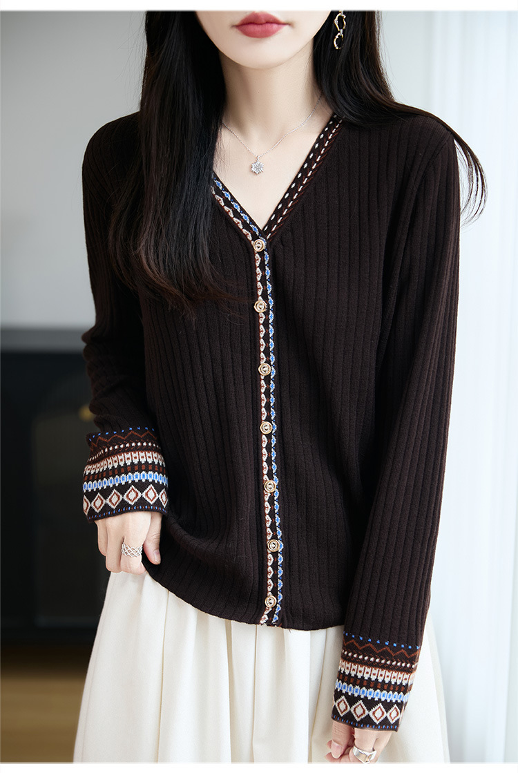 复古民族风提花针织开衫女短外套毛衣2025新款外搭女装小衫上衣秋