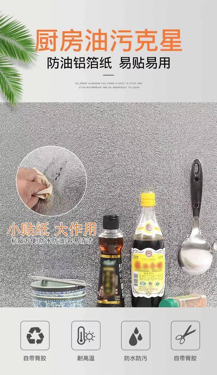 加厚20米厨房防水防油贴纸耐高温墙贴防潮墙纸橱柜台面柜子铝箔纸