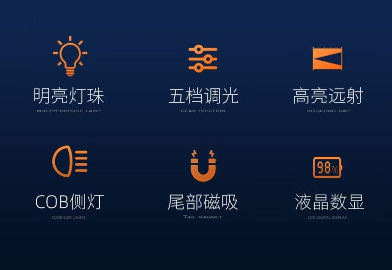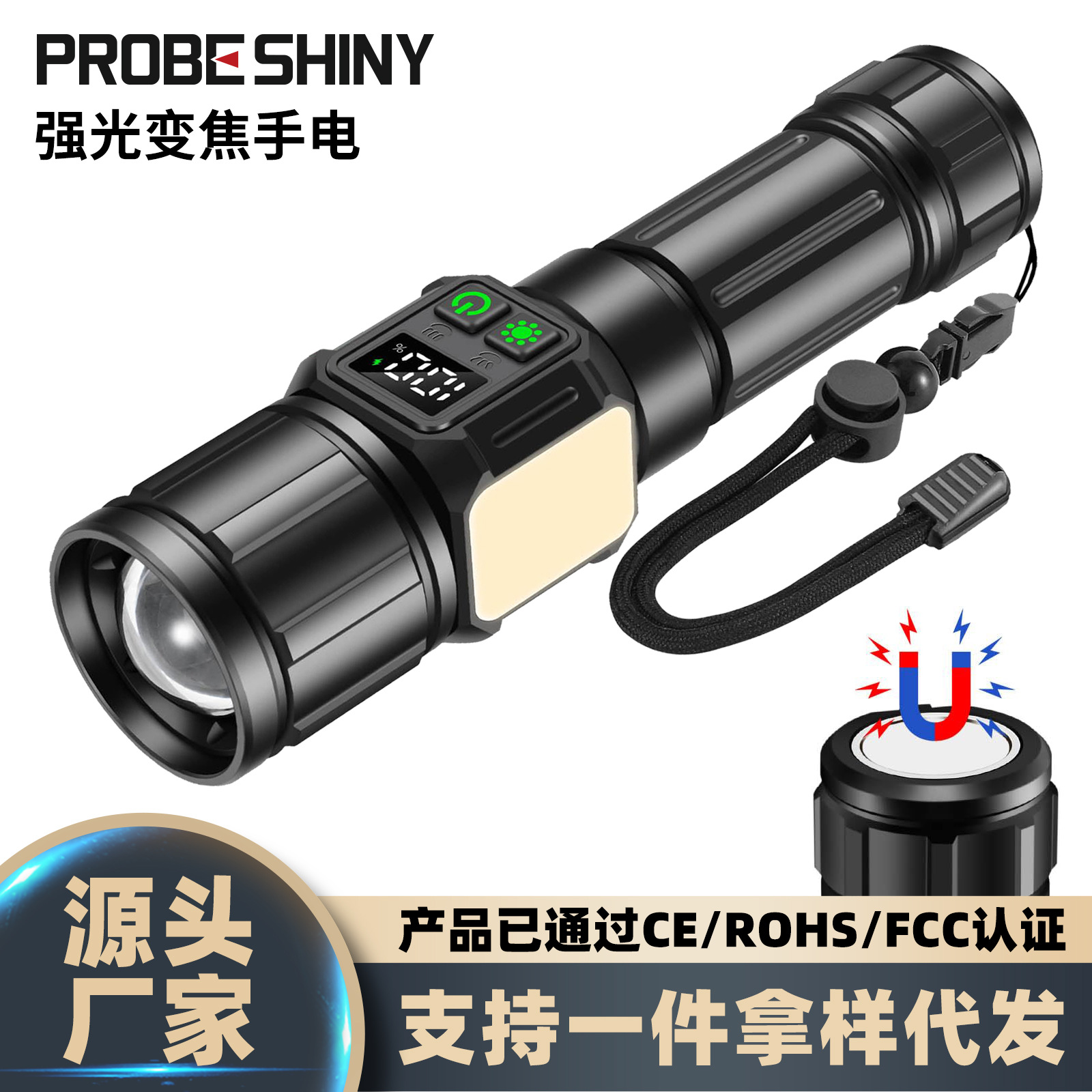跨境户外手电筒多功能LED强光远射数显手电便携式尾部磁吸照明灯