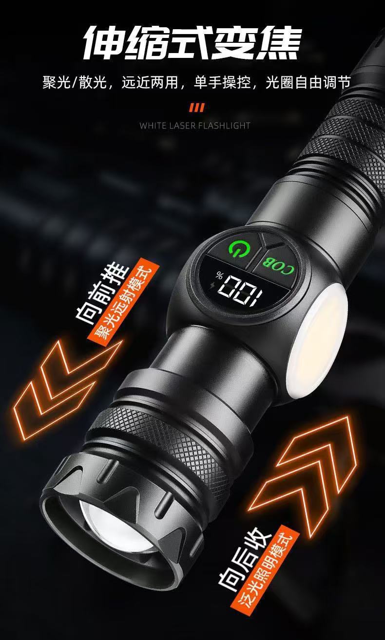 国境を越えた人気の白いレーザー ズーム懐中電灯 Type-C 充電式 COB サイドライト 赤と白の光 多機能出力可能