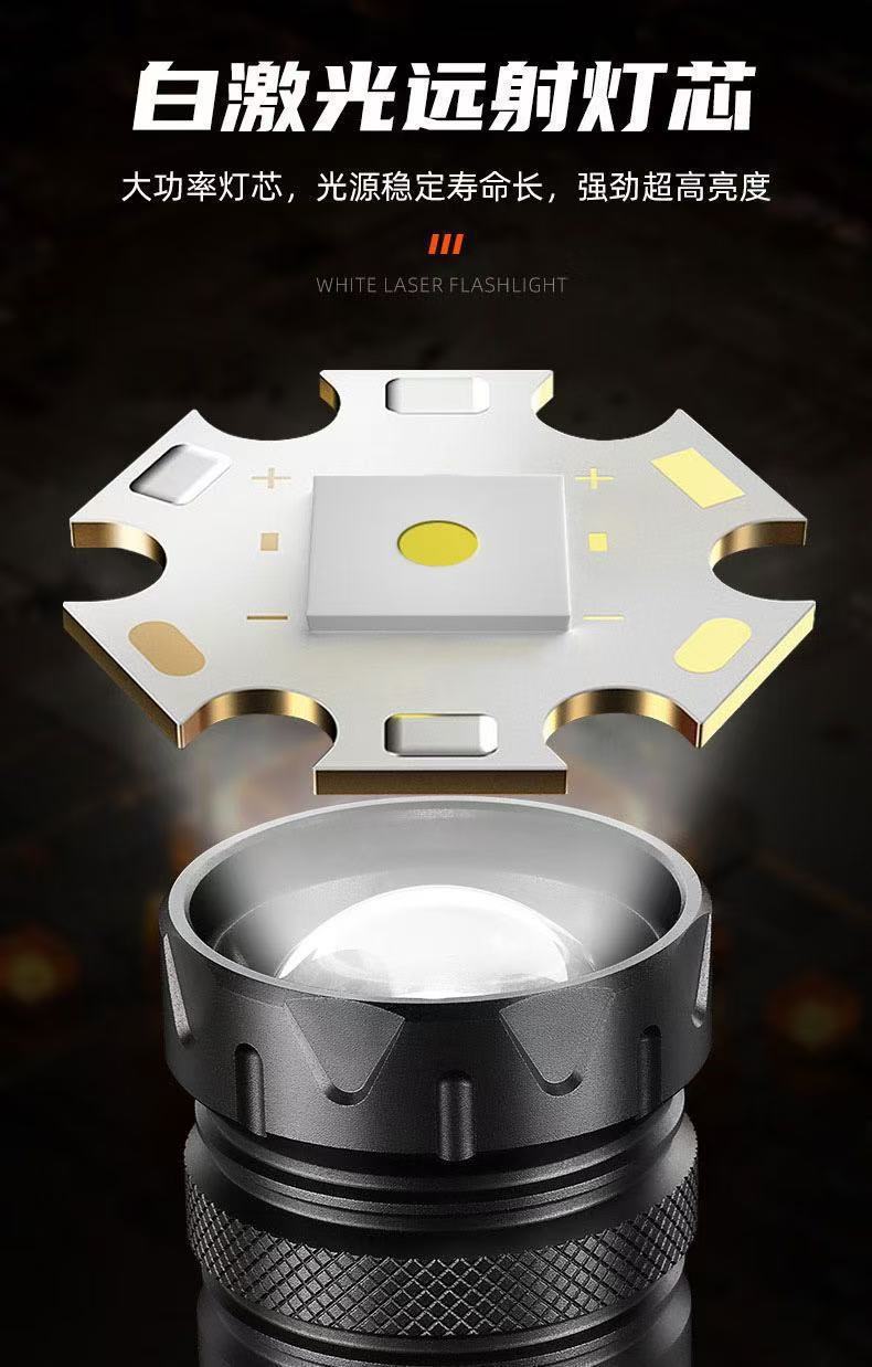 1500ルーメン 越境ホワイトレーザー懐中電灯 多機能サイドライト ポータブル緊急用10万光源照明懐中電灯