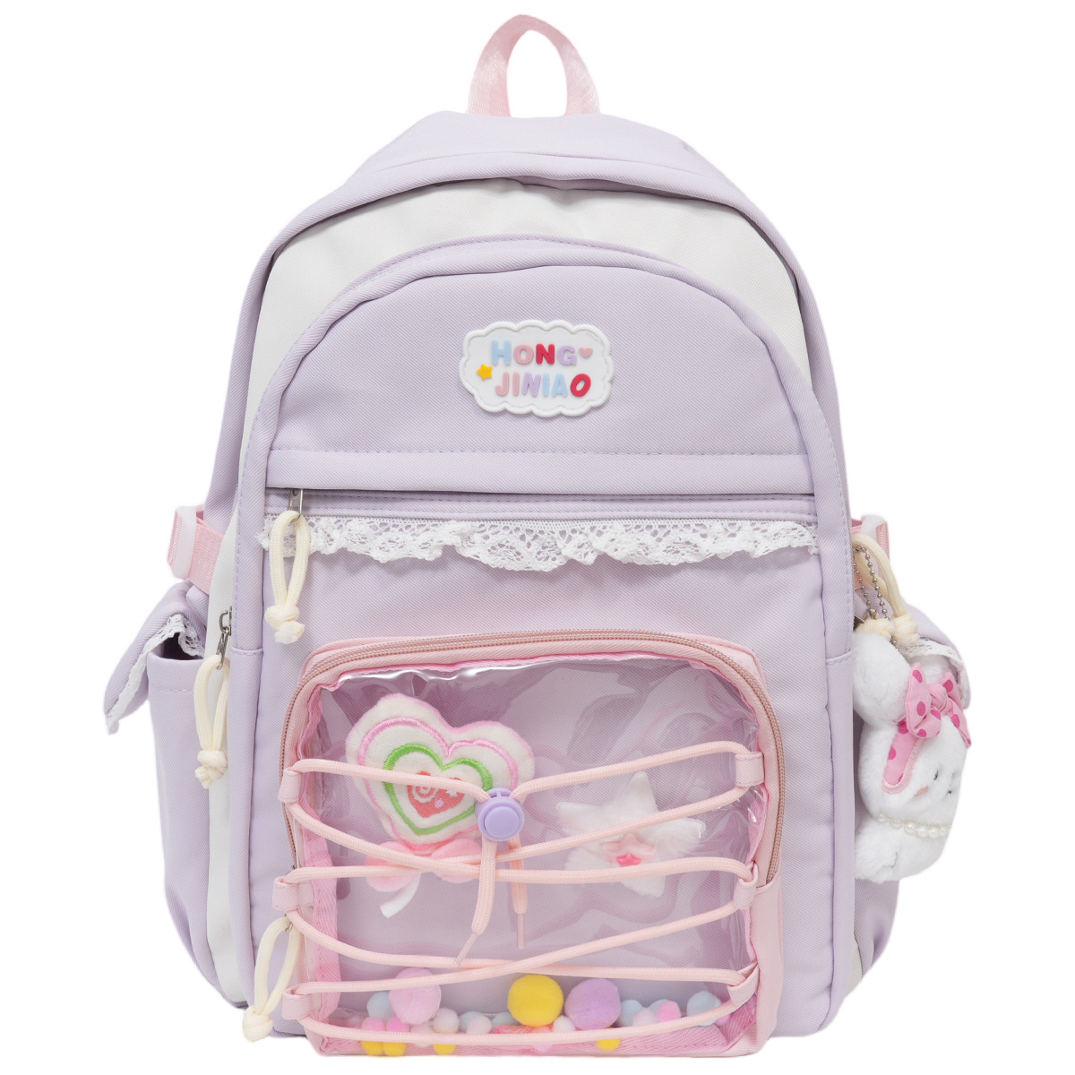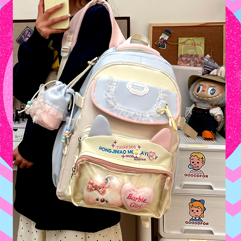 可爱蕾丝透明娃包吧唧痛包初高中大容量背包大学生旅游休闲背包