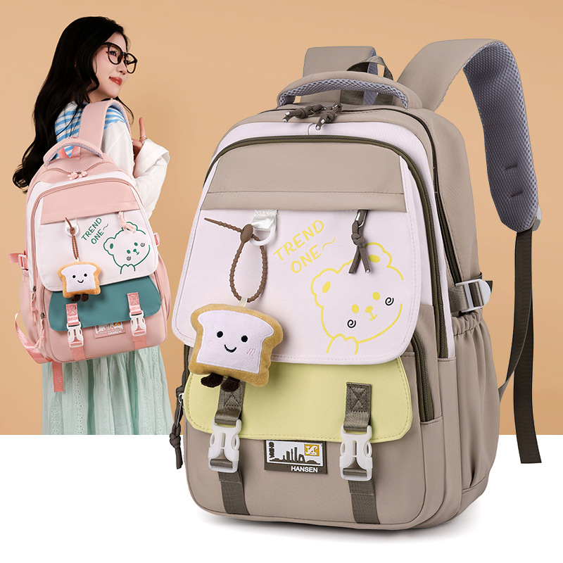 跨境爆款撞色休闲大容量轻便3-6双肩包高级感ins小众初高中女书包