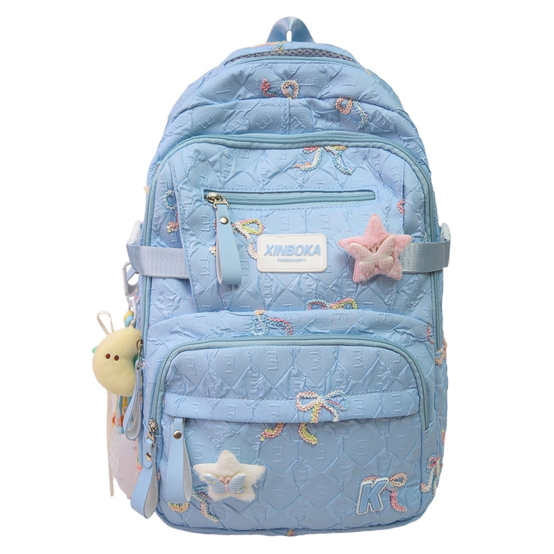 书包大学生女初高中高颜值轻便大容量双肩包起皱绣线蝴蝶结背包