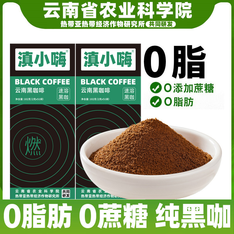 農科院ブラックコーヒー0脂無糖精減フィットネス速溶コーヒー粉アメリカ雲南小粒注意神脳