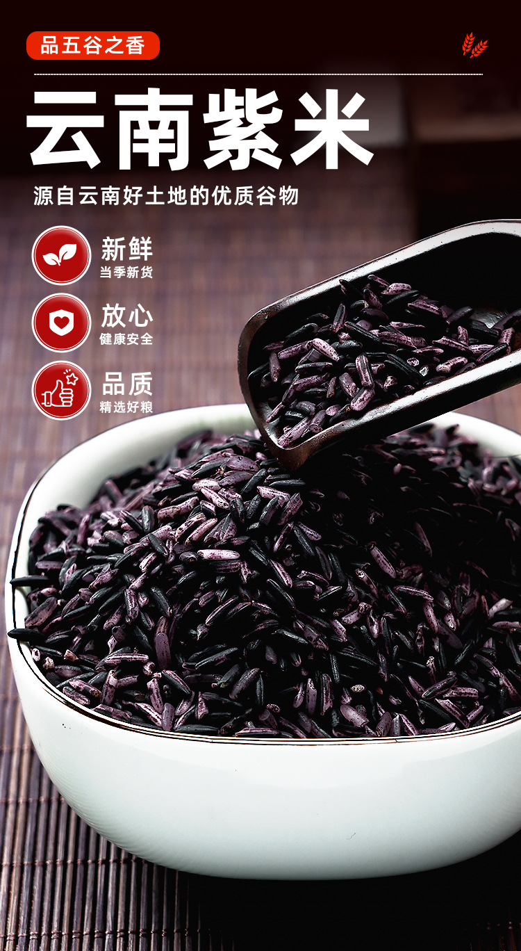 包装规格 云南紫米250g*1袋,云南紫米500*1袋,云南紫米500*2袋,云南紫米500*3袋,云南紫米500*5袋,云南紫米500*10袋