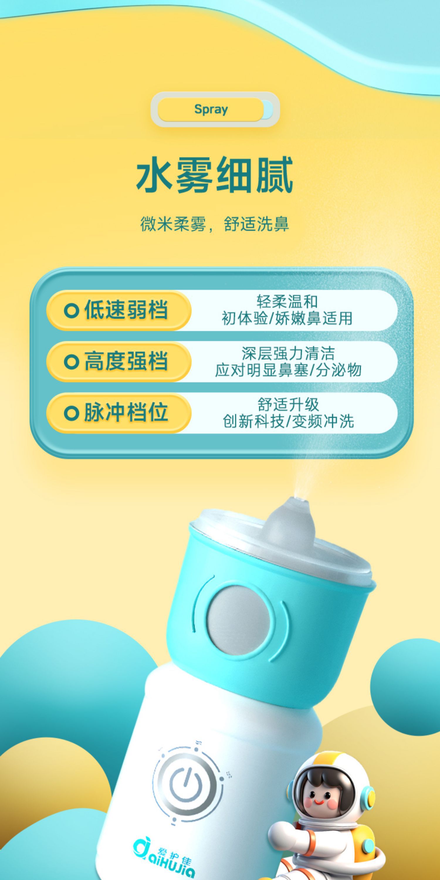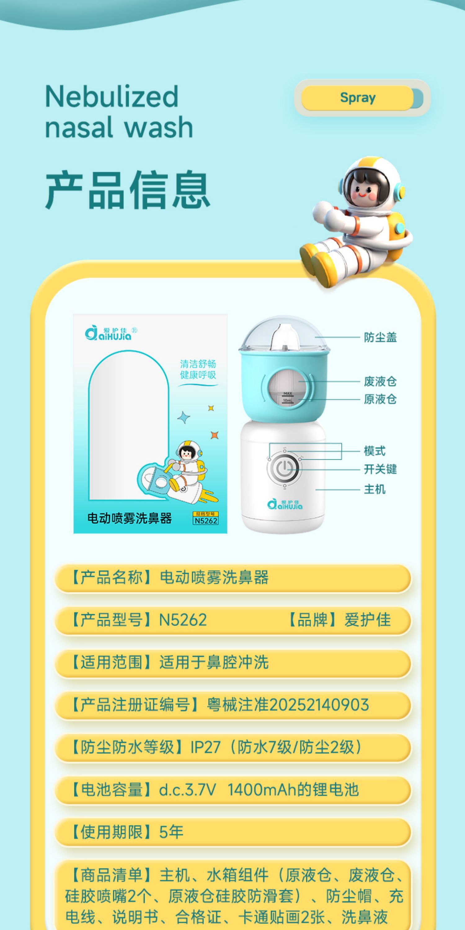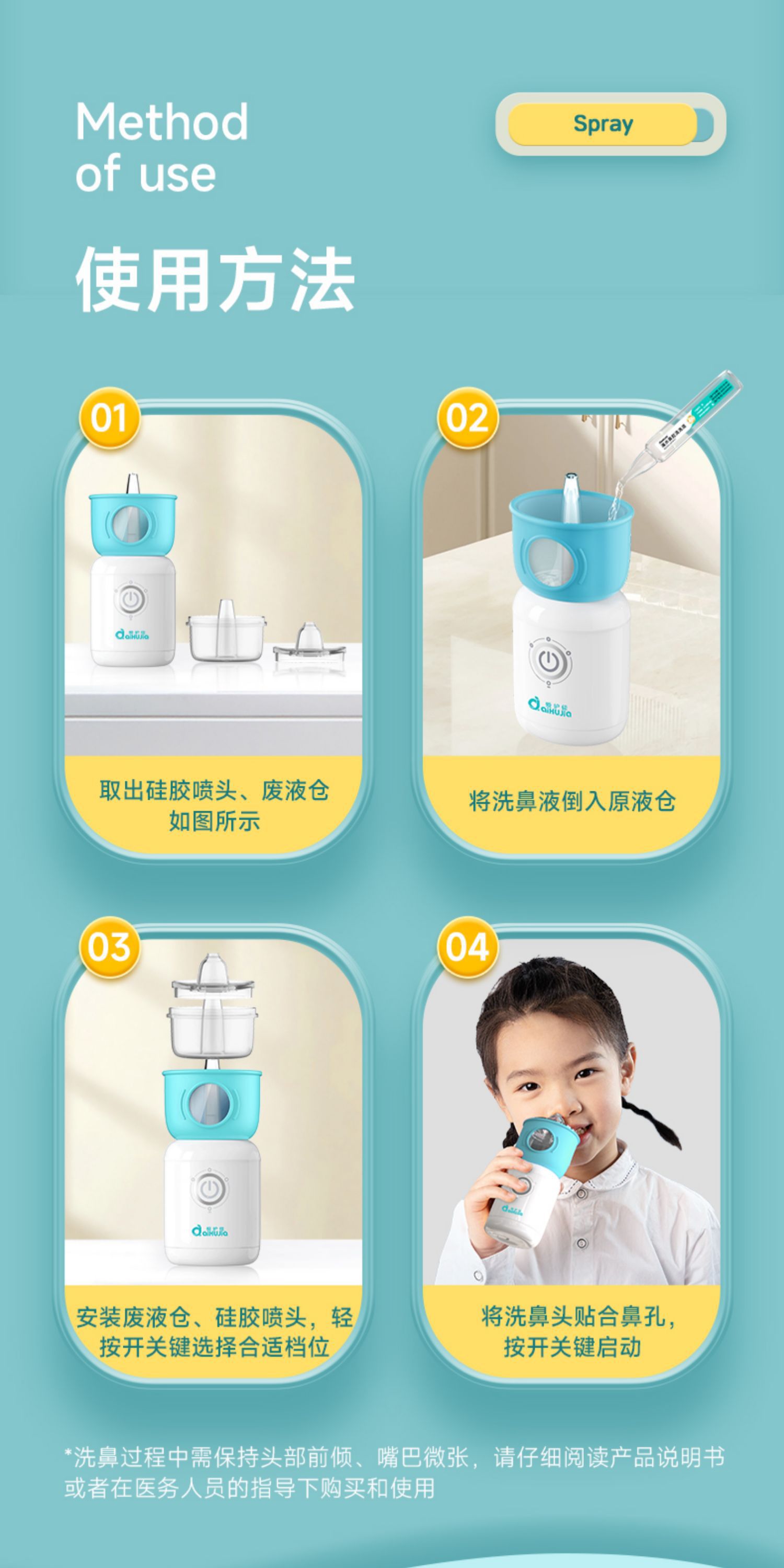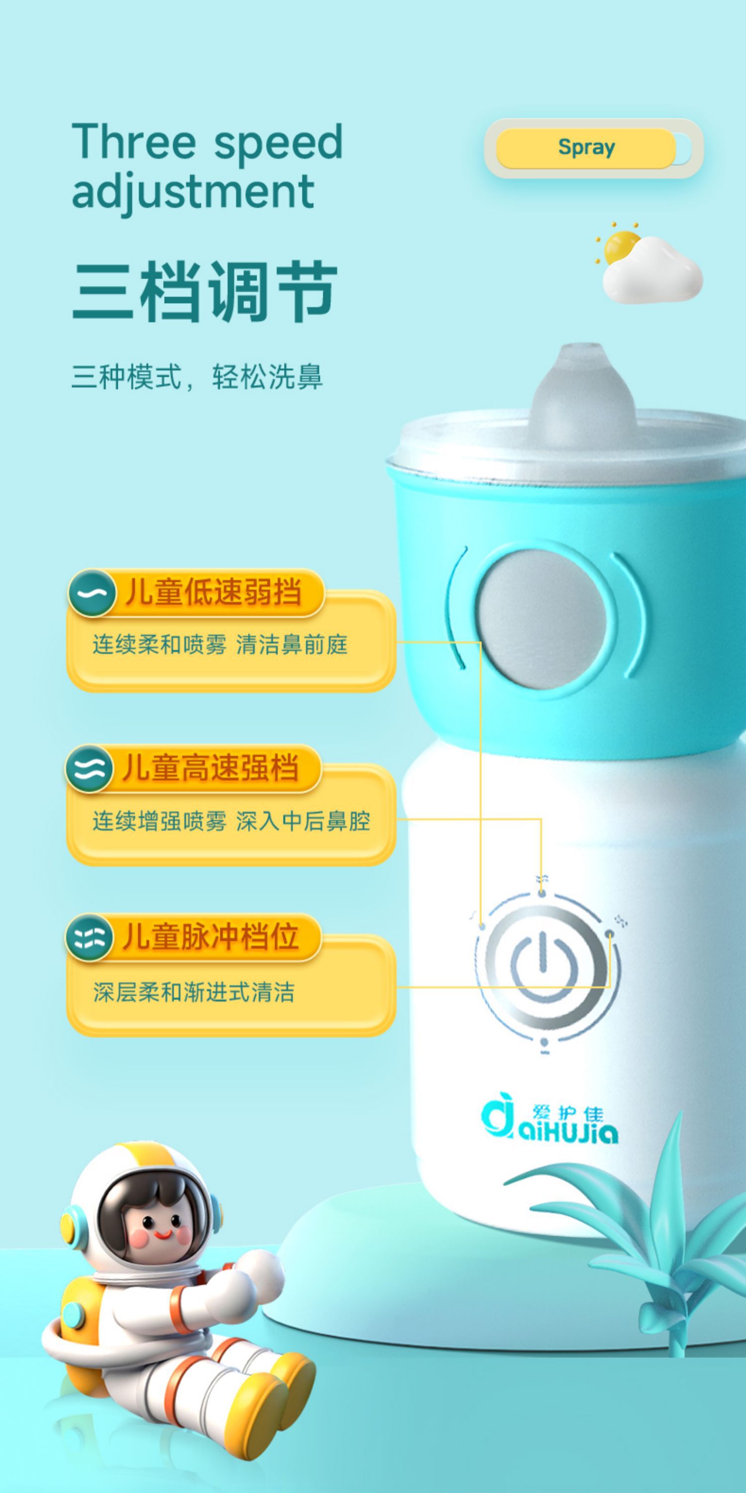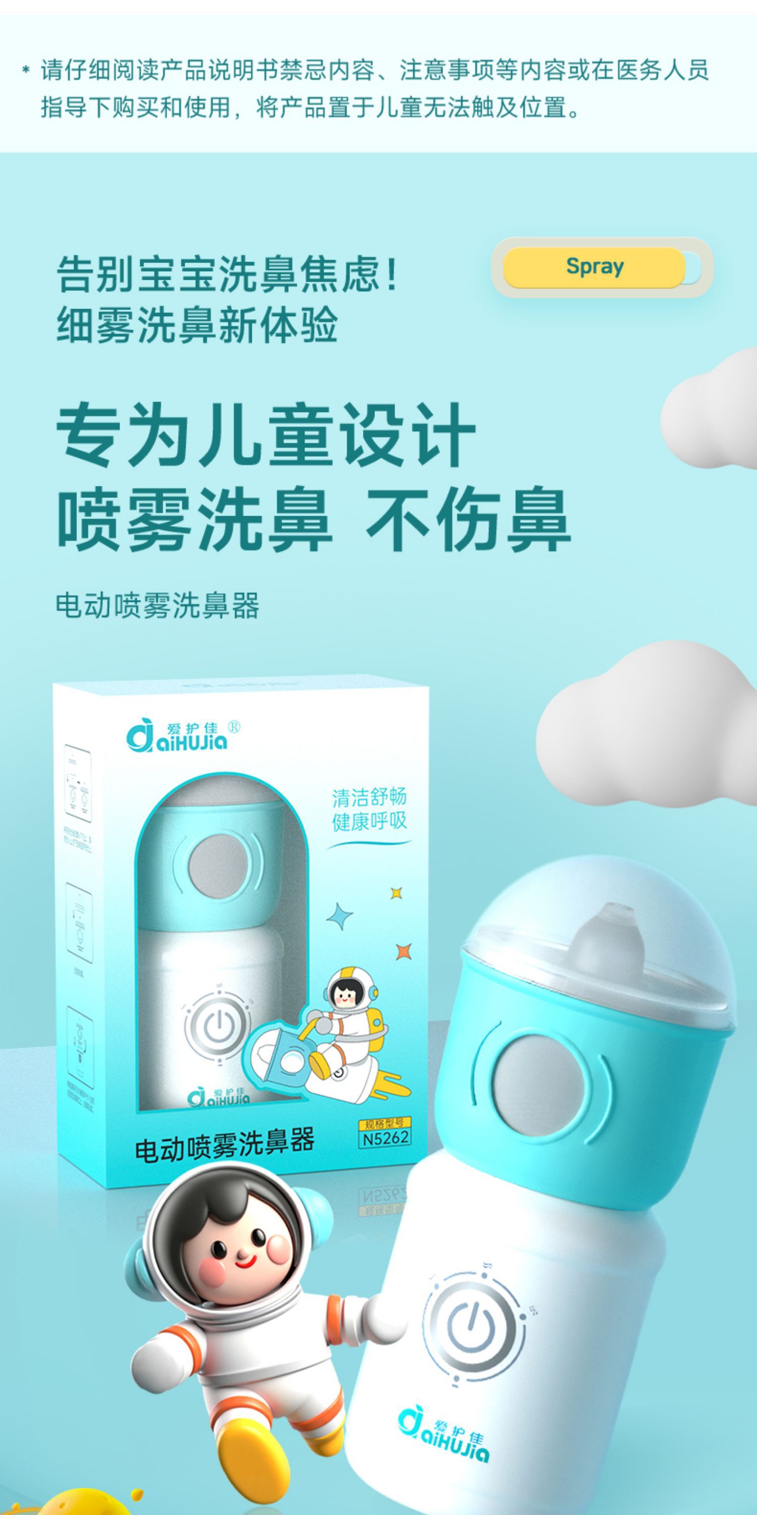 爱护佳医用电动洗鼻器儿童用清洗盐鼻腔鼻塞鼻干喷雾冲洗器打喷嚏