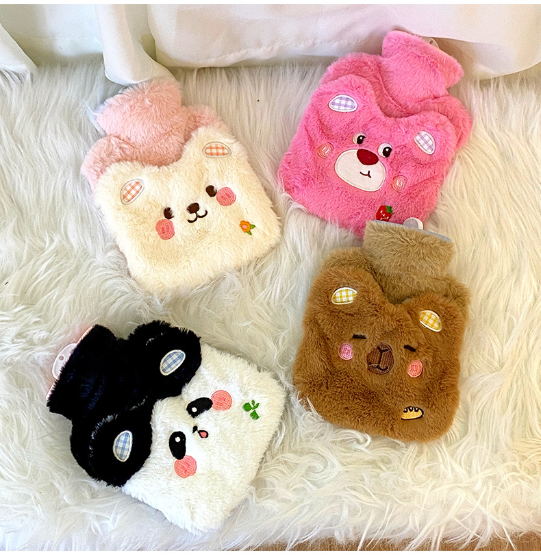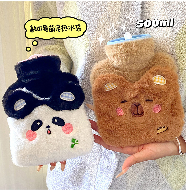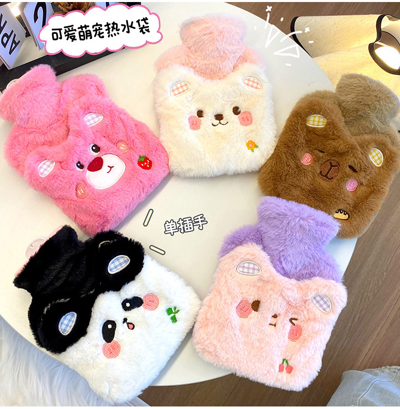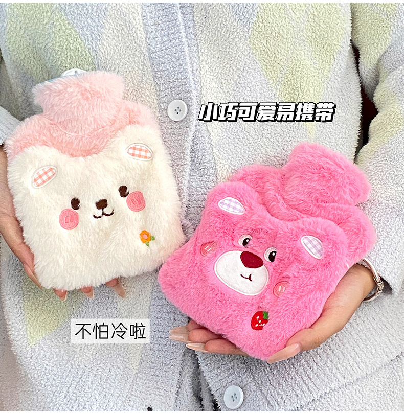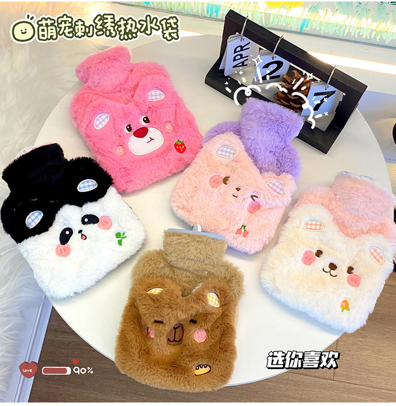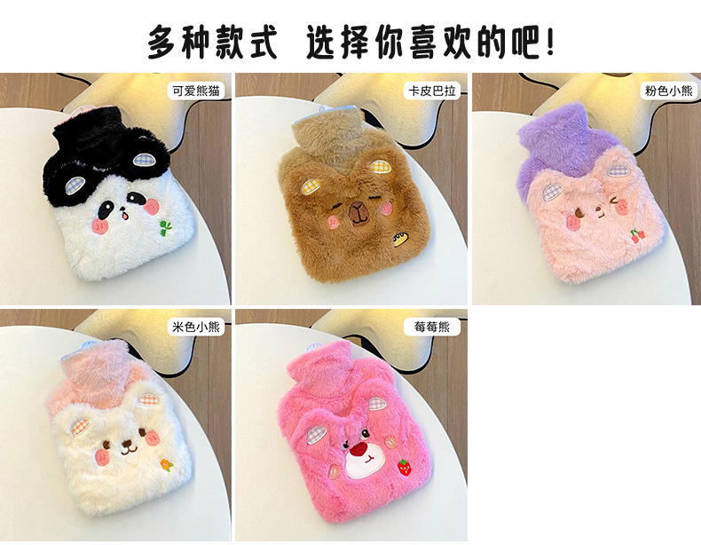 新款可爱卡通毛绒布套学生暖手宝加厚PVC注水热水袋可拆洗暖水袋