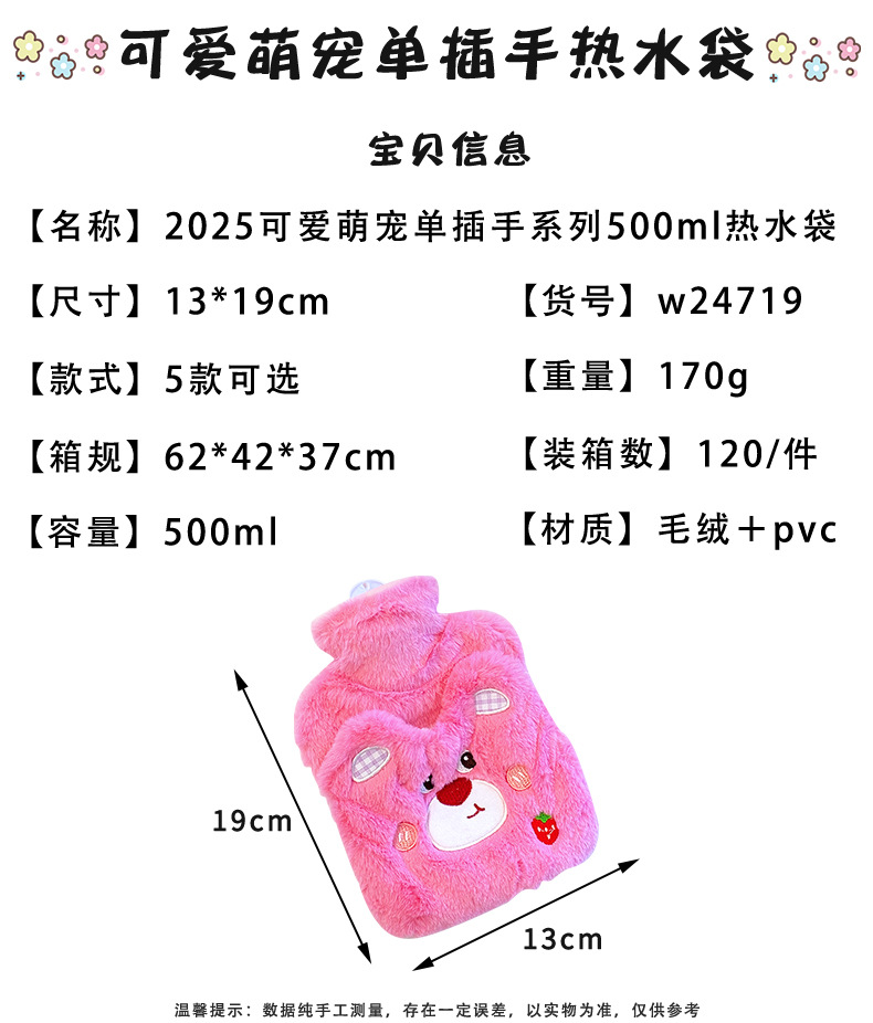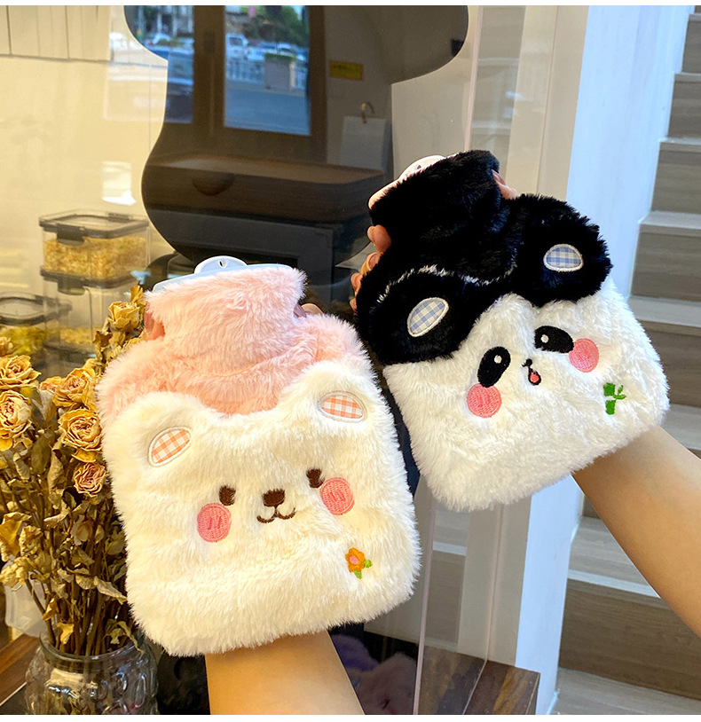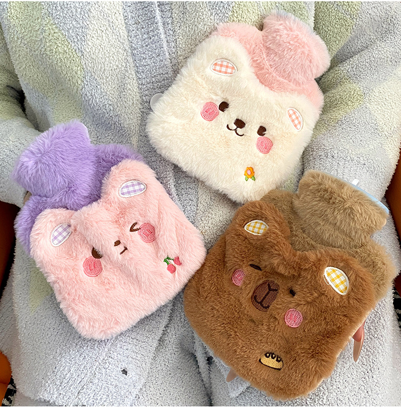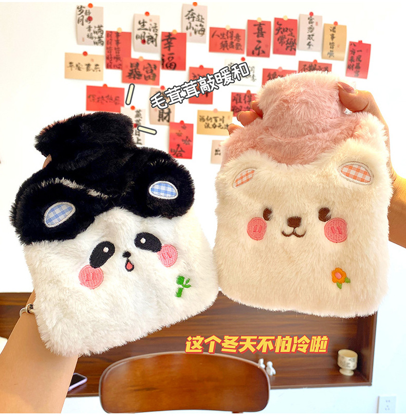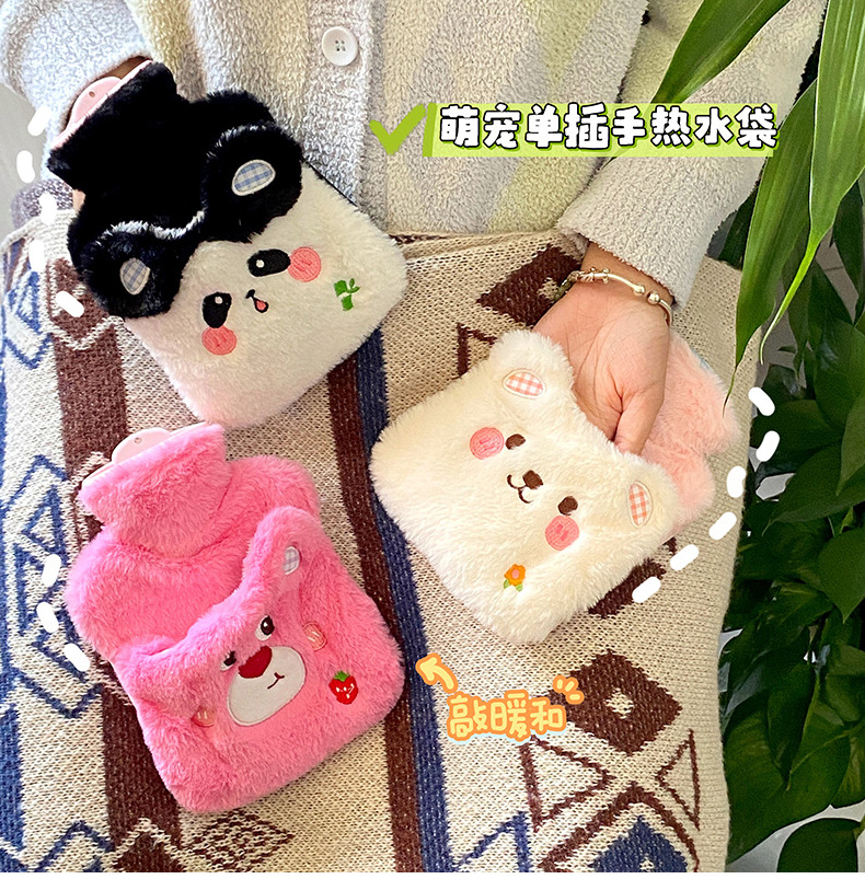 新款可爱卡通毛绒布套学生暖手宝加厚PVC注水热水袋可拆洗暖水袋